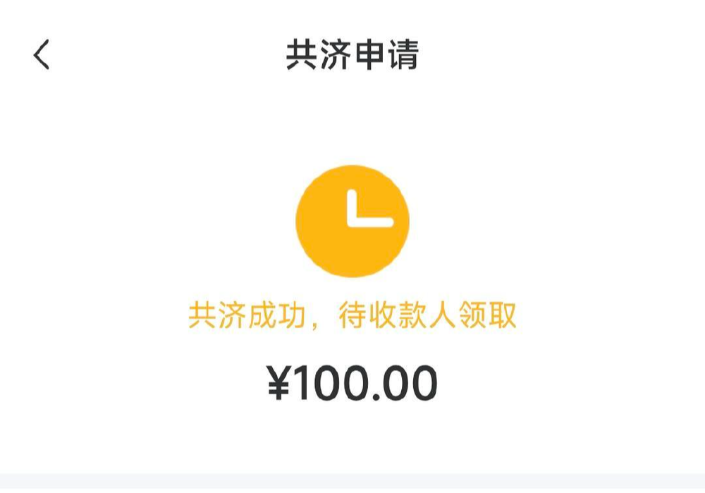 随后,记者看到该共济申请已成功提交,待收款人领取。