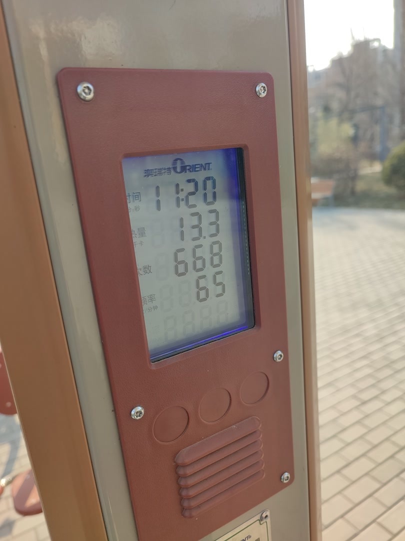 泰河园一里北侧的健身广场,很多器械都有智能设备记录运动数据