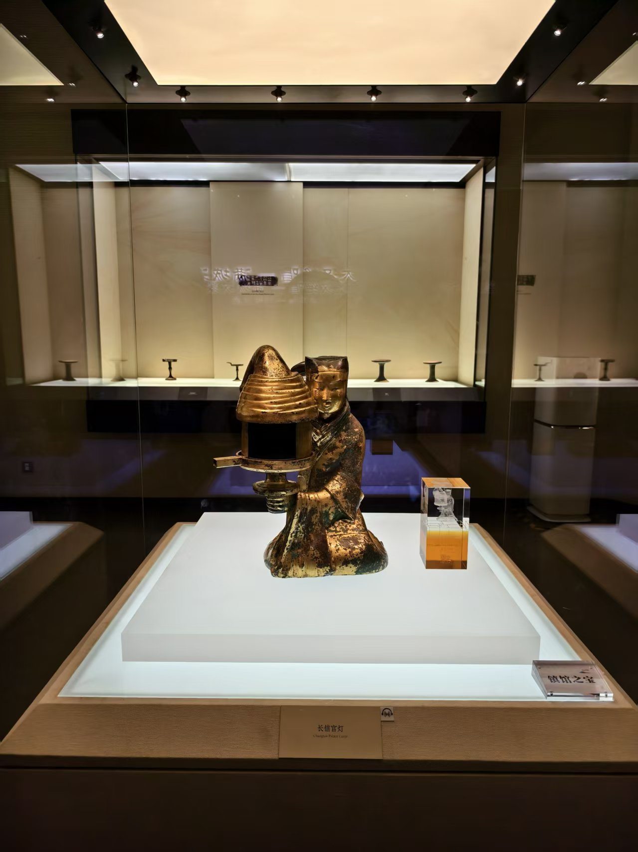 在河北博物院“大汉绝唱——满城汉墓”展厅,游客汪鸿隔着玻璃静静凝视那盏著名的西汉长信宫灯。鎏金青铜散发出温润光泽,宫女跪坐执灯的优雅姿态,灯盘灯罩的精巧设计,都令人遥想两千年前的智慧。