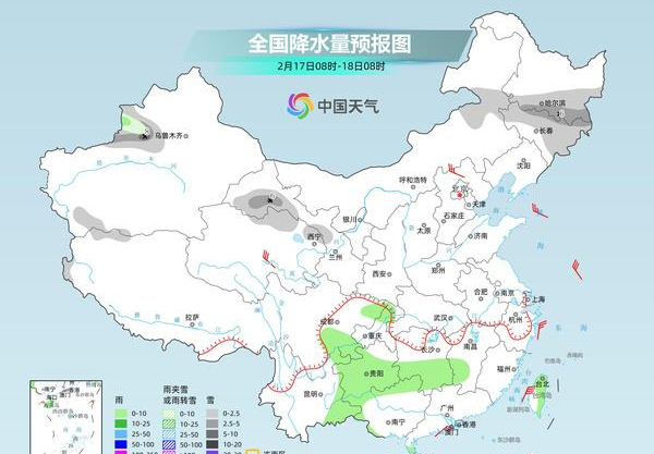明天,新疆南疆盆地、西藏西部和东南部、青海西部、川西高原北部等地部分地区有小到中雪或雨夹雪。江南西部、西南地区东部、华南北部和西部、台湾岛等地部分地区有小到中雨。