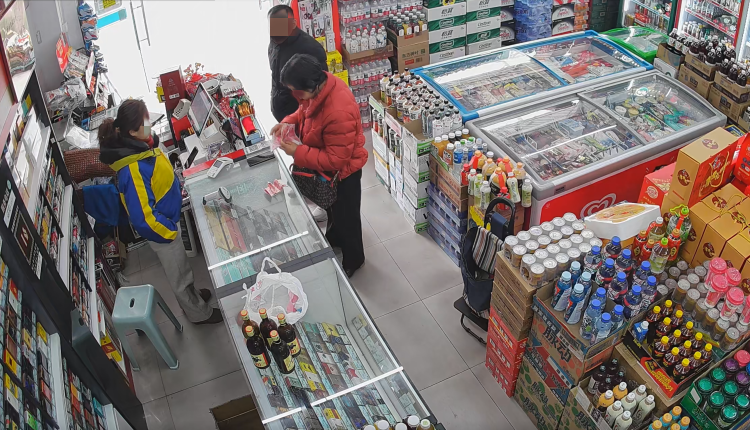▲刘女士和骗子到超市兑换现金。图片来源/上海铁路公安