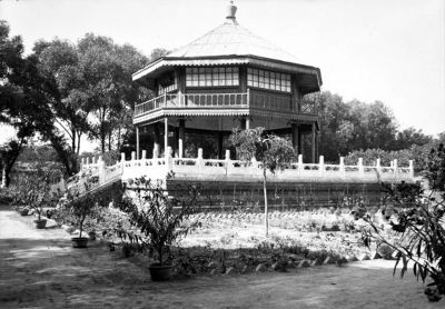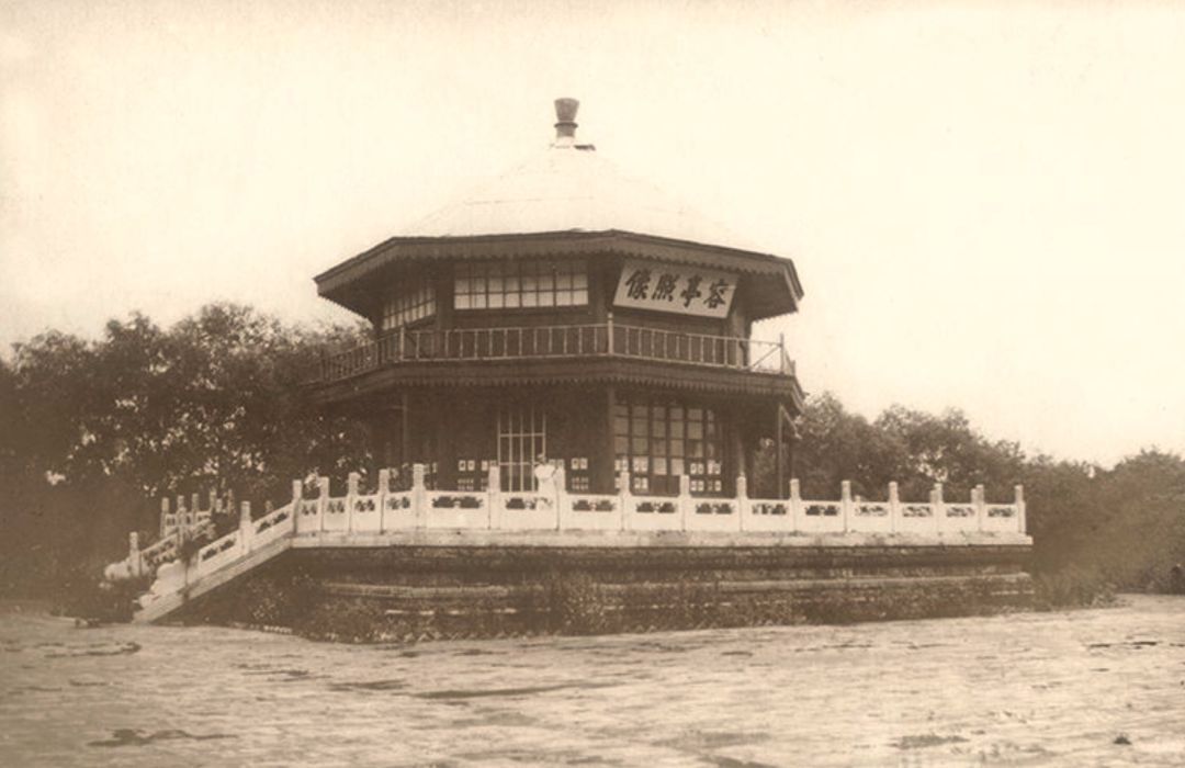 观耕台上曾用木材和玻璃搭建起一座西洋风格的两层八角木亭,见证了城南公园的繁荣时期。拍摄于1920年代