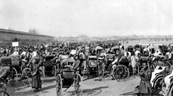 先农坛东坛墙外,像是有重大活动,集中了大批的人力车。