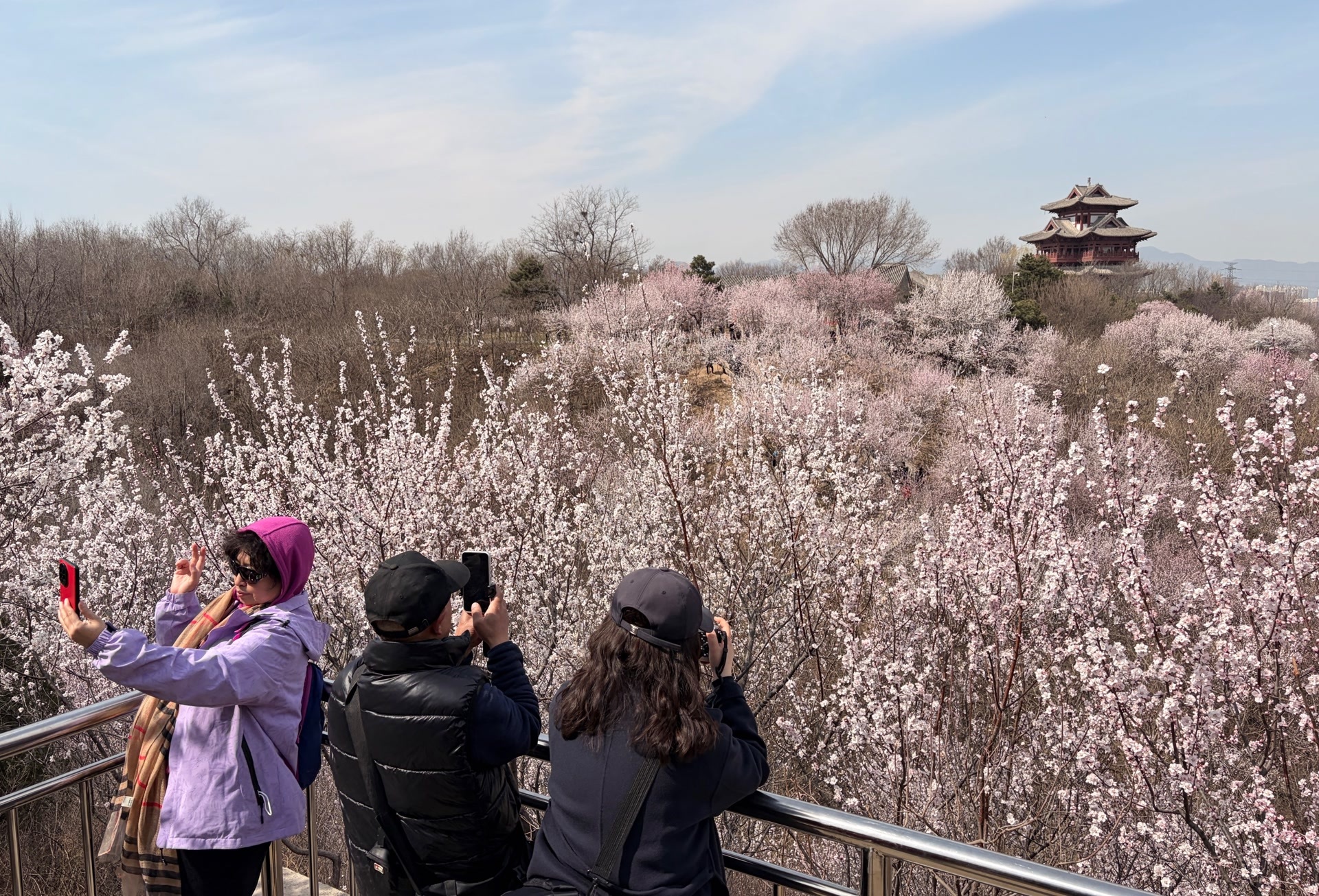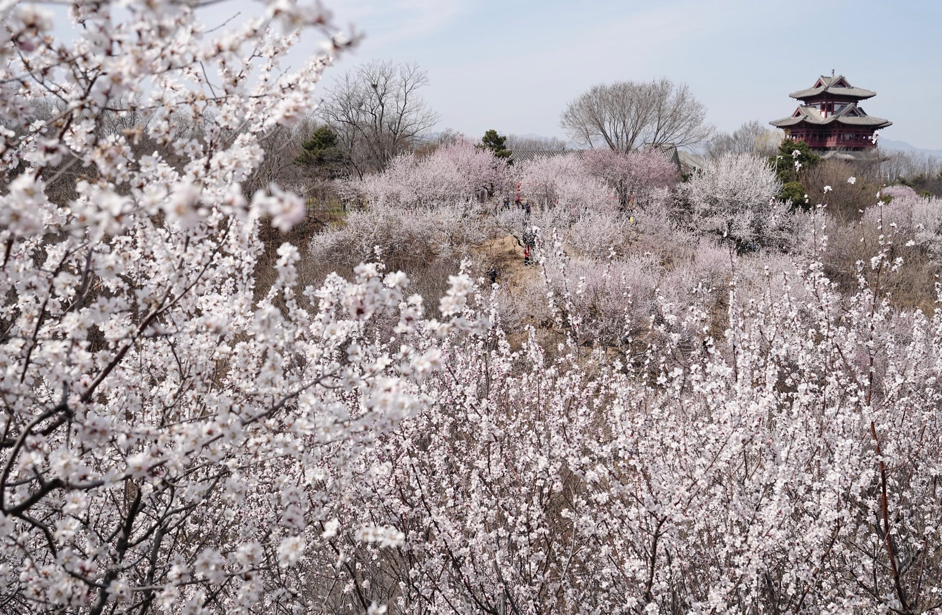 北京园博园鹰山桃花谷的山桃花又开了!登上鹰山永定塔俯瞰,漫山遍野的山桃花宛若粉色云霞开得绚烂。这个周末,来赏花!还有国潮嘉年华!