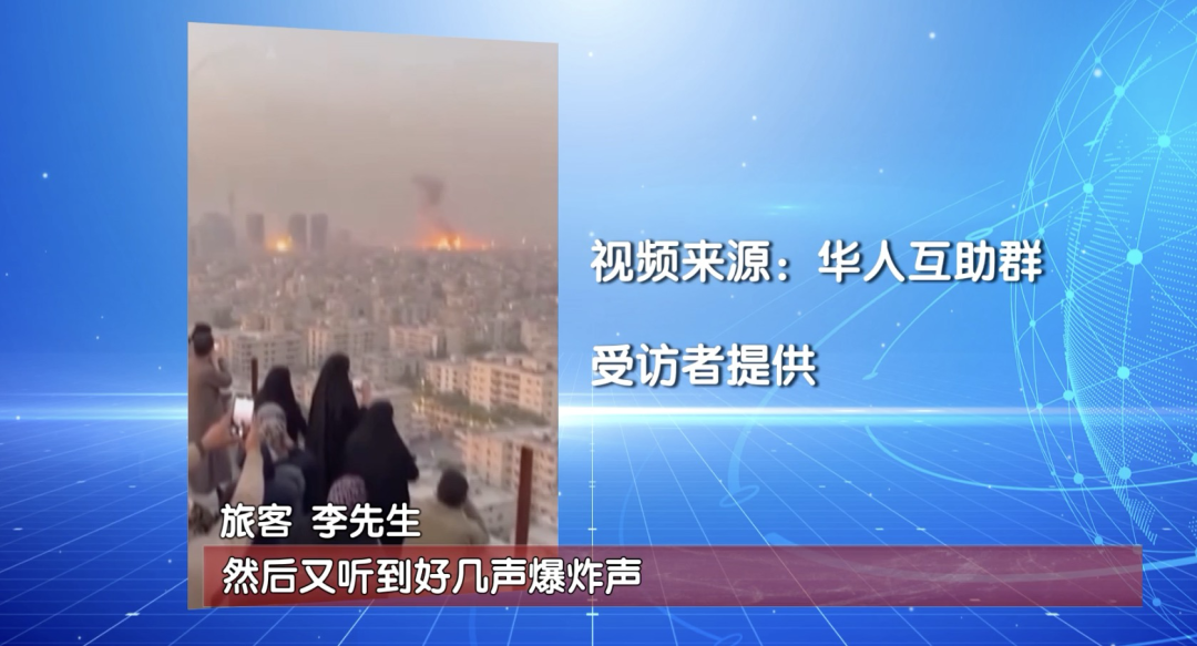 伊朗留学生刘先生说:“导弹在旁边,没有不害怕的,距离我们学校5公里外就有爆炸声,持续了5到6秒。”