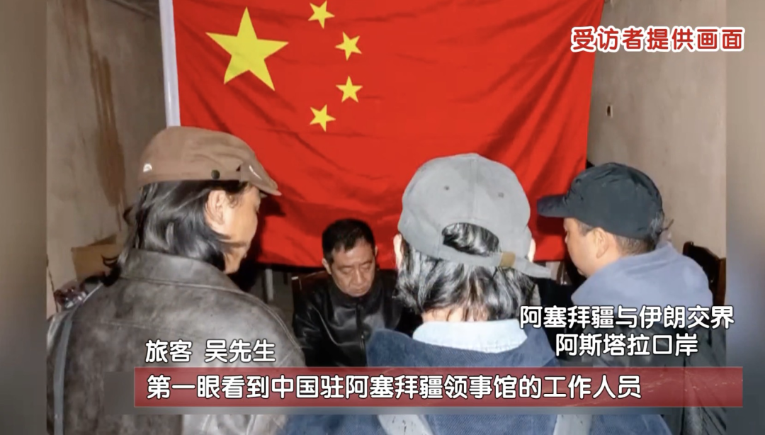 旅客吴先生说:“第一眼就看到中国驻阿塞拜疆领事馆的工作人员在那边迎接我们,给我们准备了食物和水,还安排了大巴车。非常感谢中国驻阿塞拜疆领事馆的工作人员以及当地的华侨华人联合会,非常感谢他们,为我们这次能够顺利从伊朗撤离出来,回到我们祖国母亲的怀抱,提供了很多的帮助。”