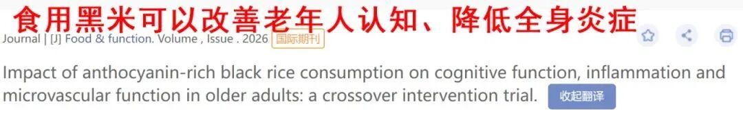 《自然衰老》上有研究表明:每天食用210克煮熟的黑米,仅8天就可显著降低体内炎症水平,连续食用120天,还能著提升空间记忆与工作记忆能力,并改善老年人的认知功能,对预防痴呆很有帮助。