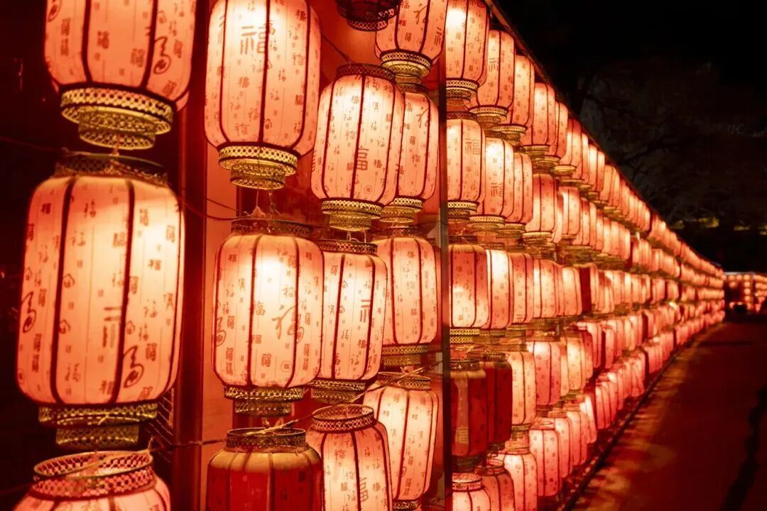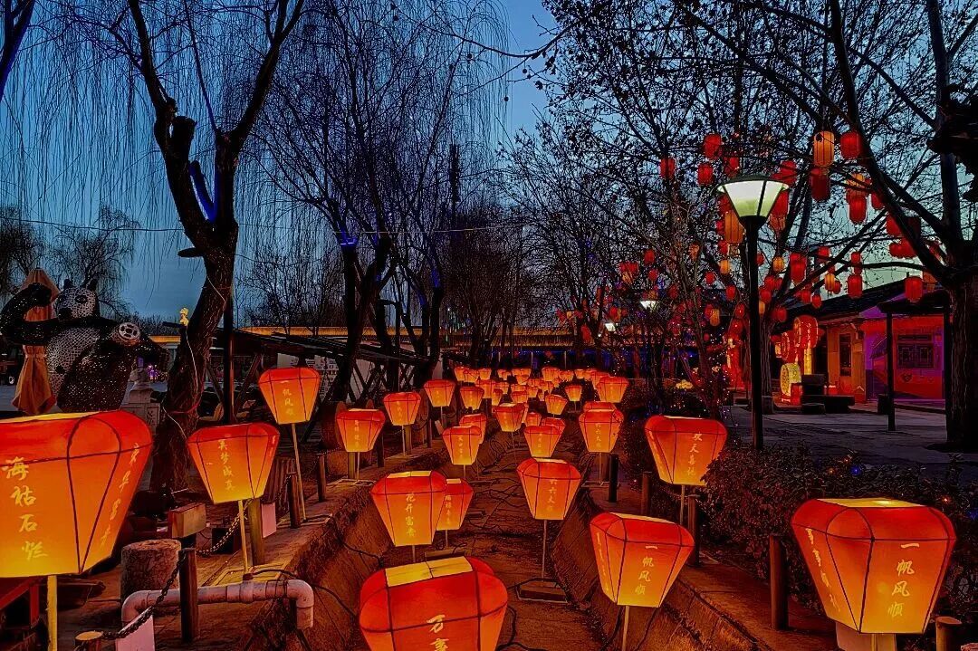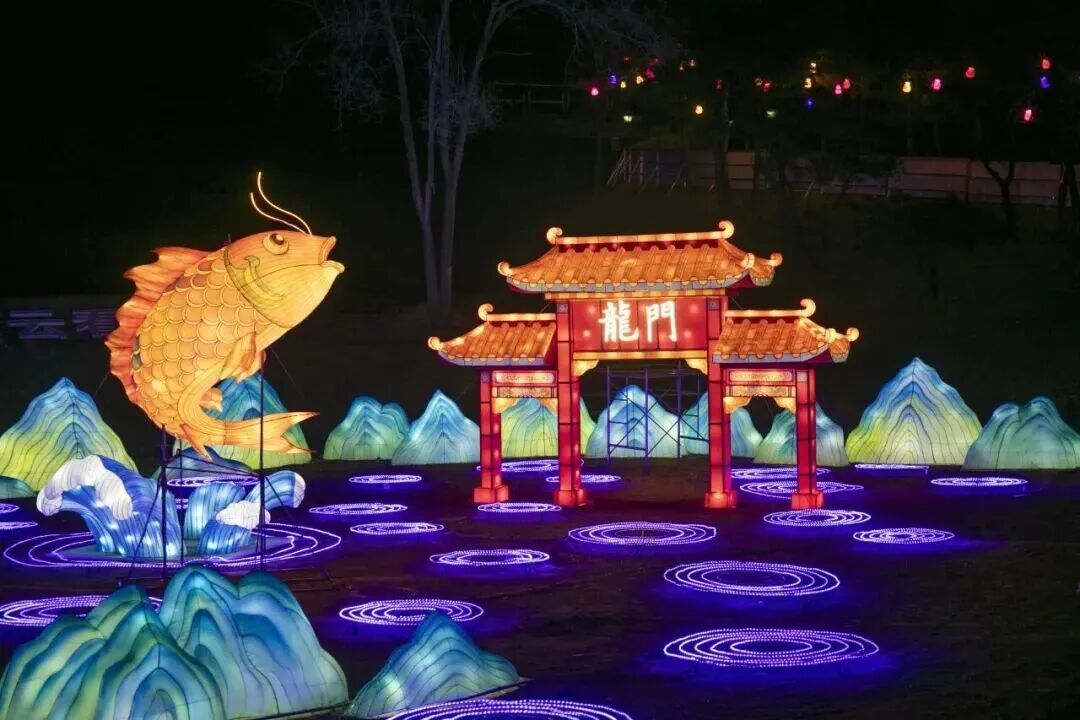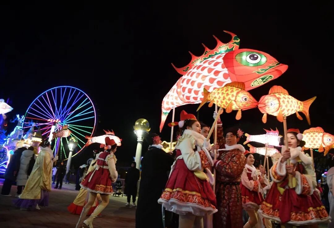 百余盏仿古鱼灯、宫灯点亮入园主道