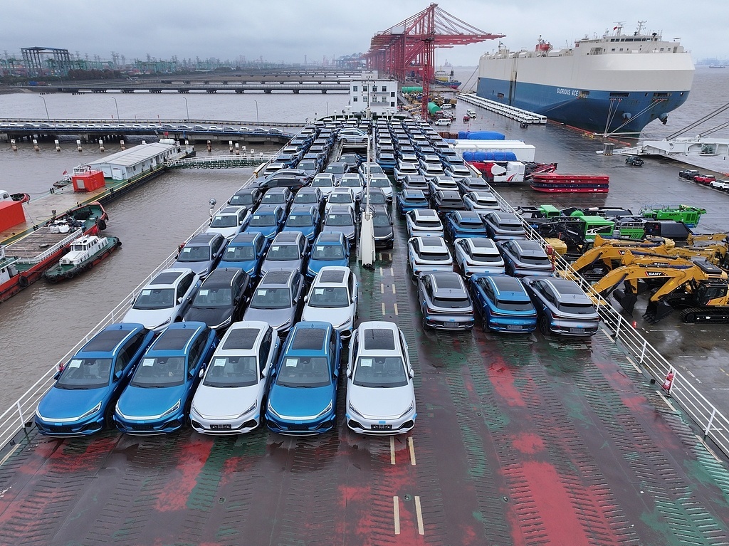 为开辟发展新天地,中国新能源汽车已开始出征海外市场。2025年,汽车出口超700万辆,规模再上新台阶。其中,新能源汽车出口261.5万辆,同比增长1倍,成为出口“新三样”的代表,对外贸易呈现出较强韧性,中国车正在踏上“全球路”。