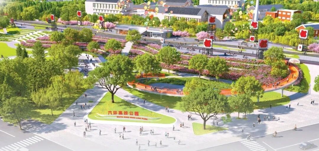 六环高线公园启动段环形自行车和人行步道效果图。