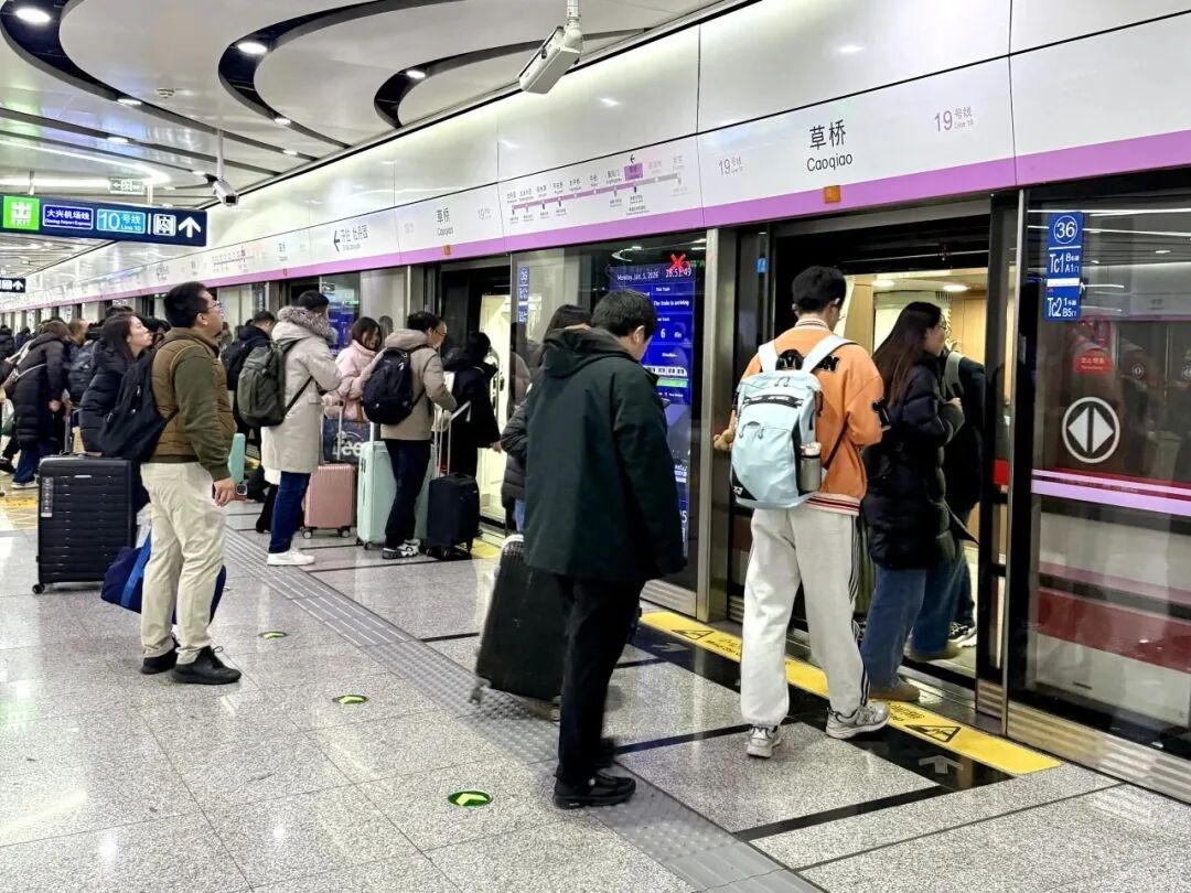 “八站两场”客流持续高位运行,接续运输压力较为集中。建议乘客尽量选择轨道交通抵离机场和火车站。部分临客列车在夜间至凌晨到达,请关注交通部门发布的重点场站夜间出行服务举措,根据实际情况选择适合的市内交通接驳方式。