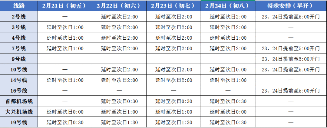 4号线、14号线,21日延时运营至次日1:00,22日、23日延时运营至次日2:00,24日延时运营至次日1:00;