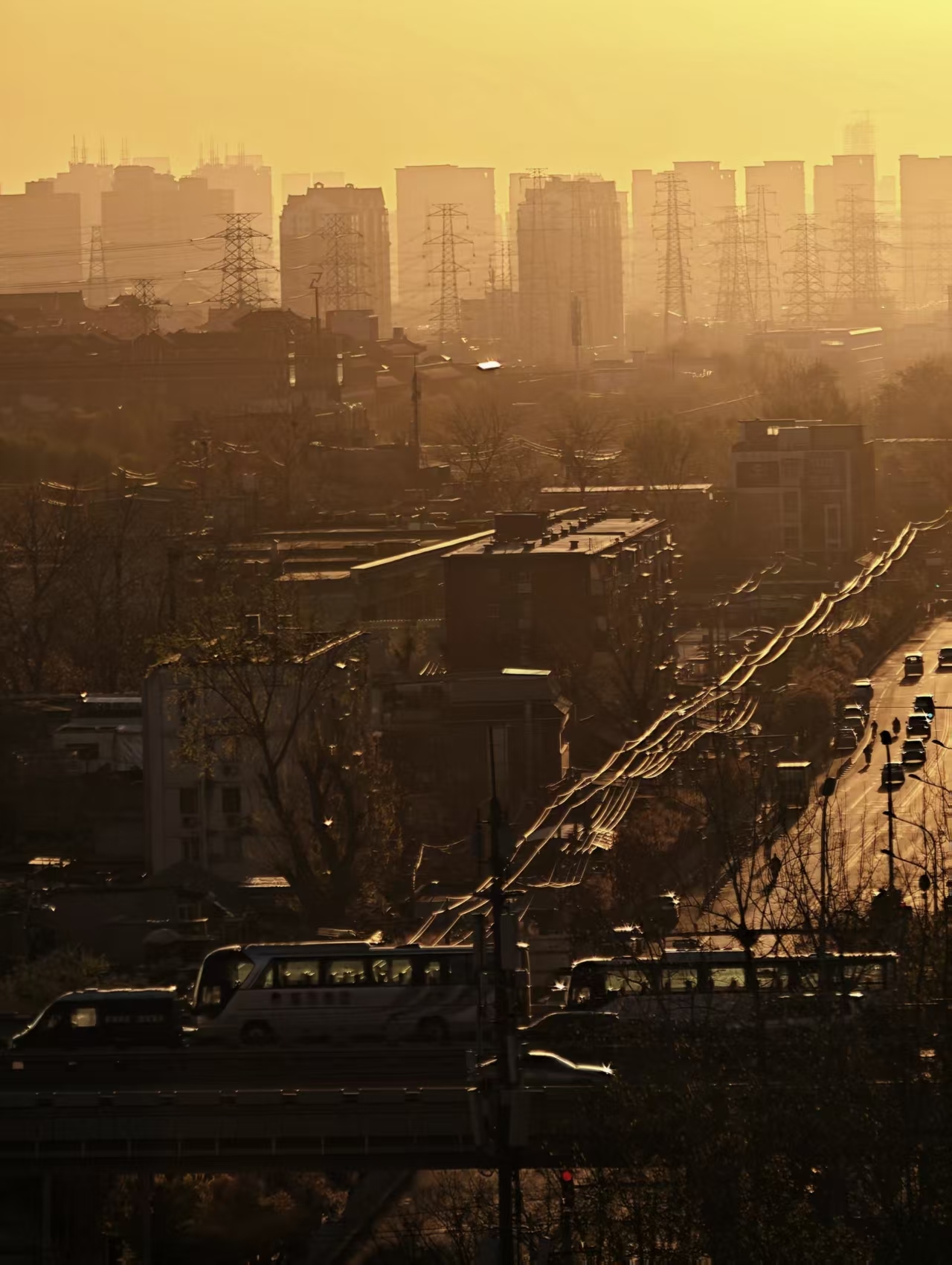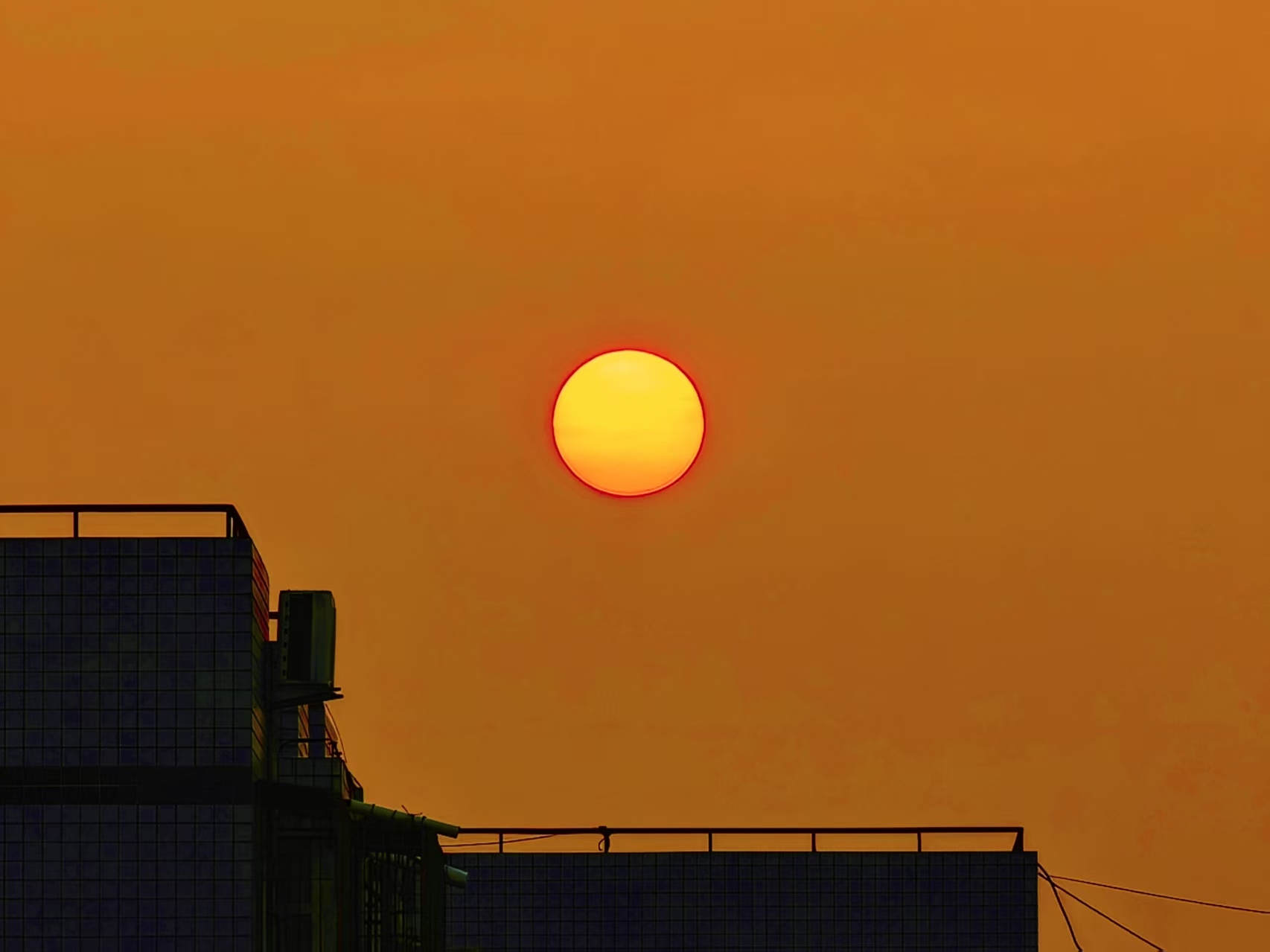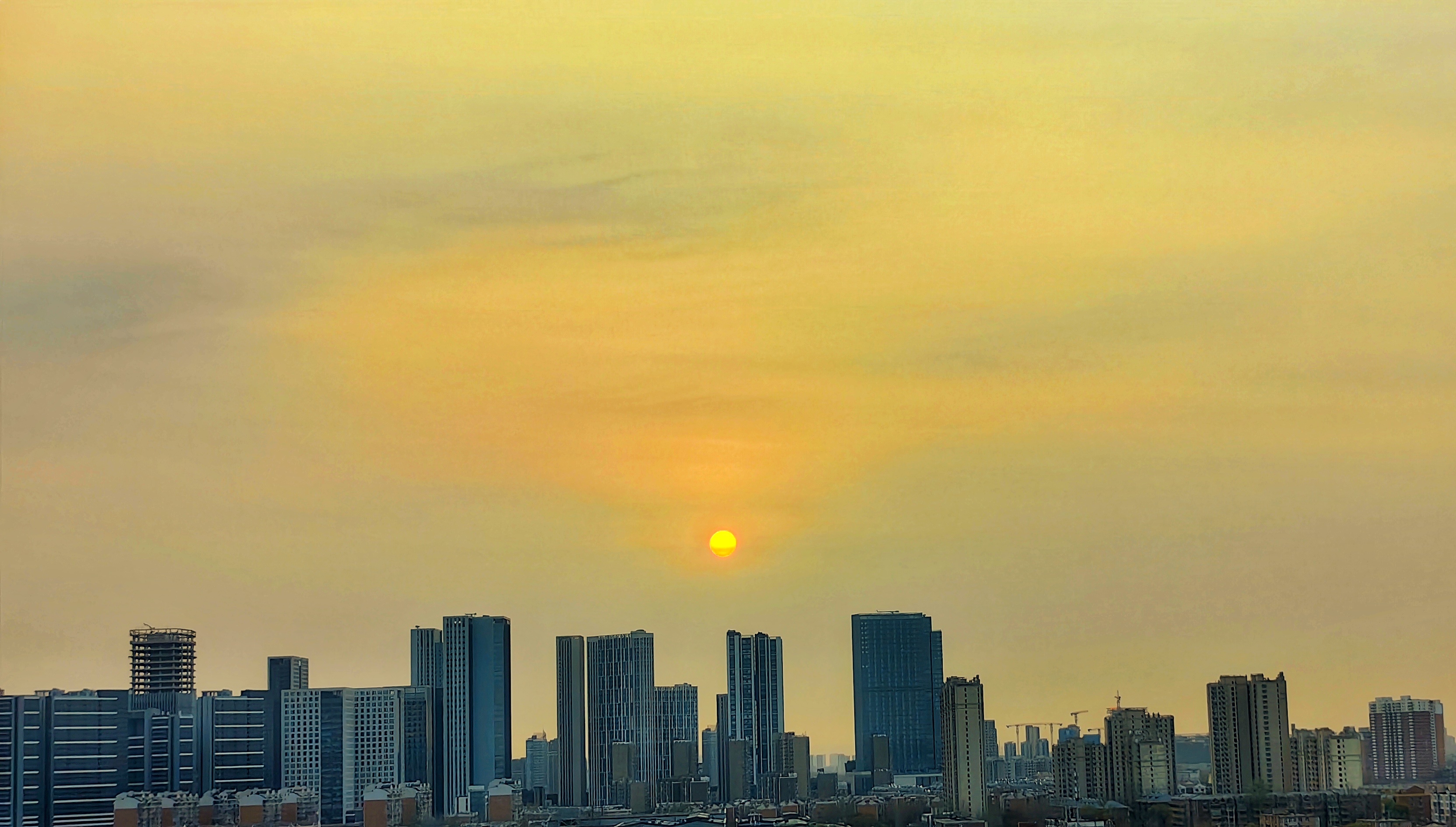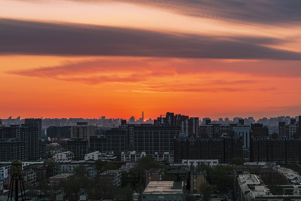 4月2日清晨,北京天空现金橘色朝霞,壮观美丽。