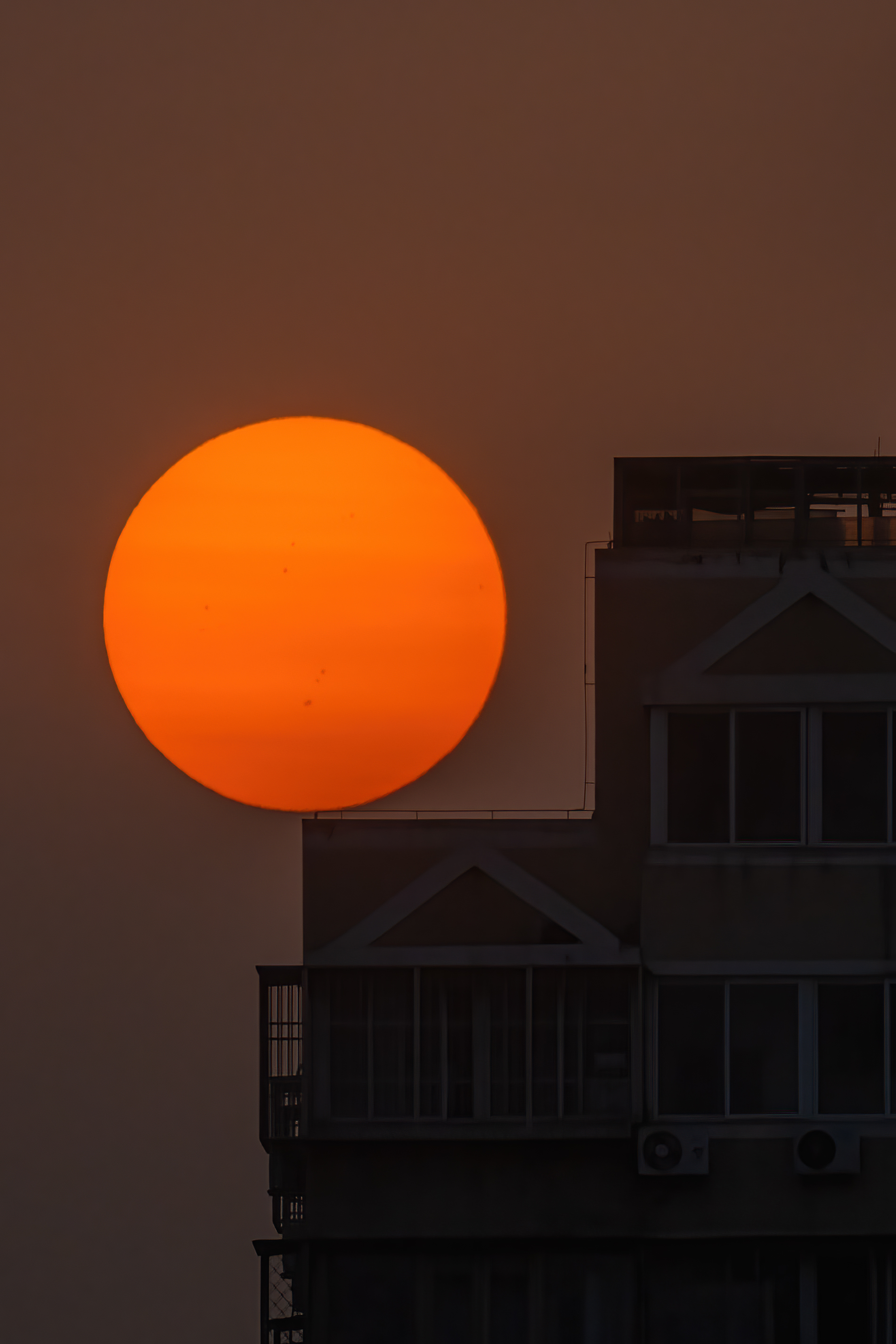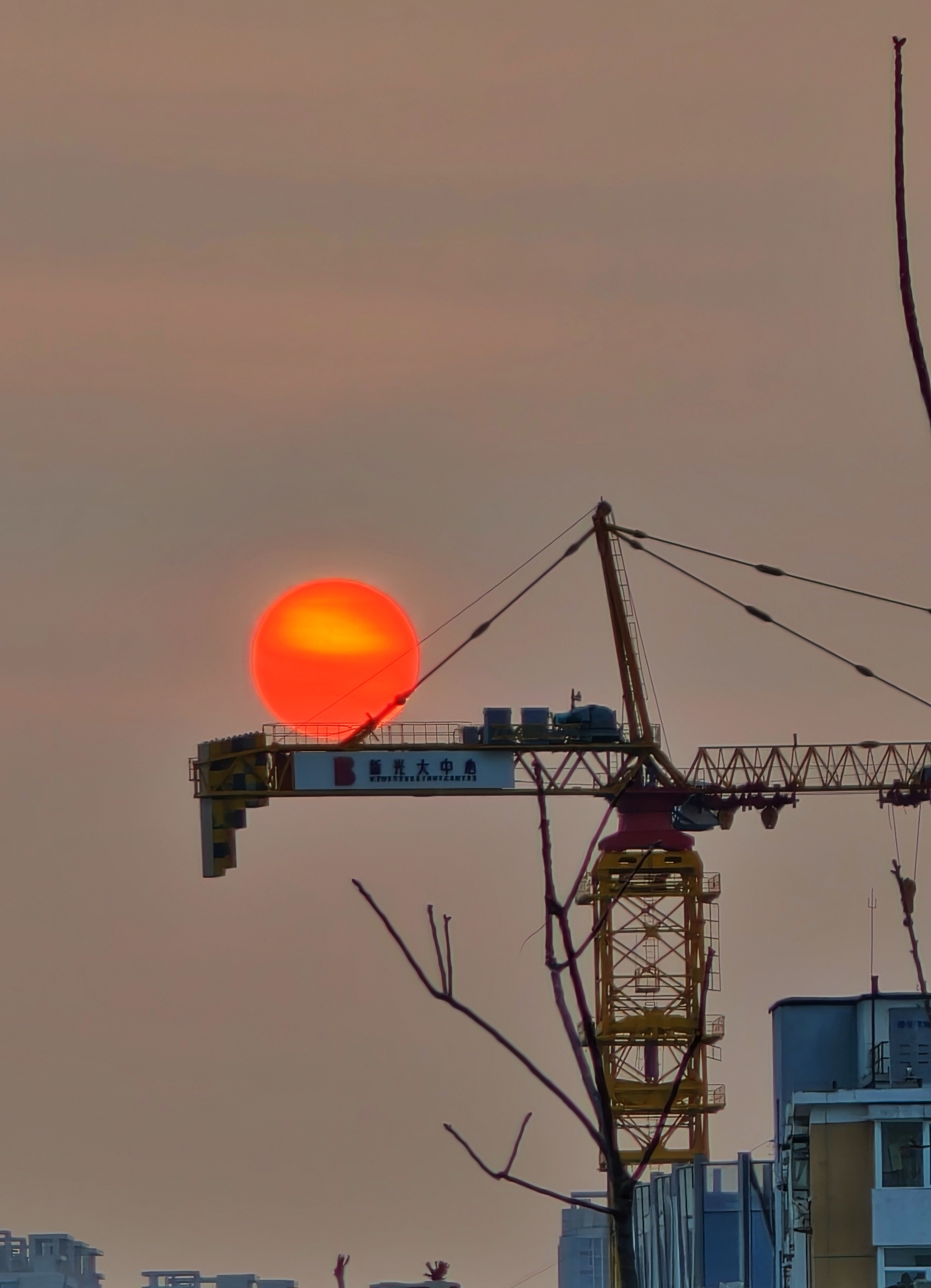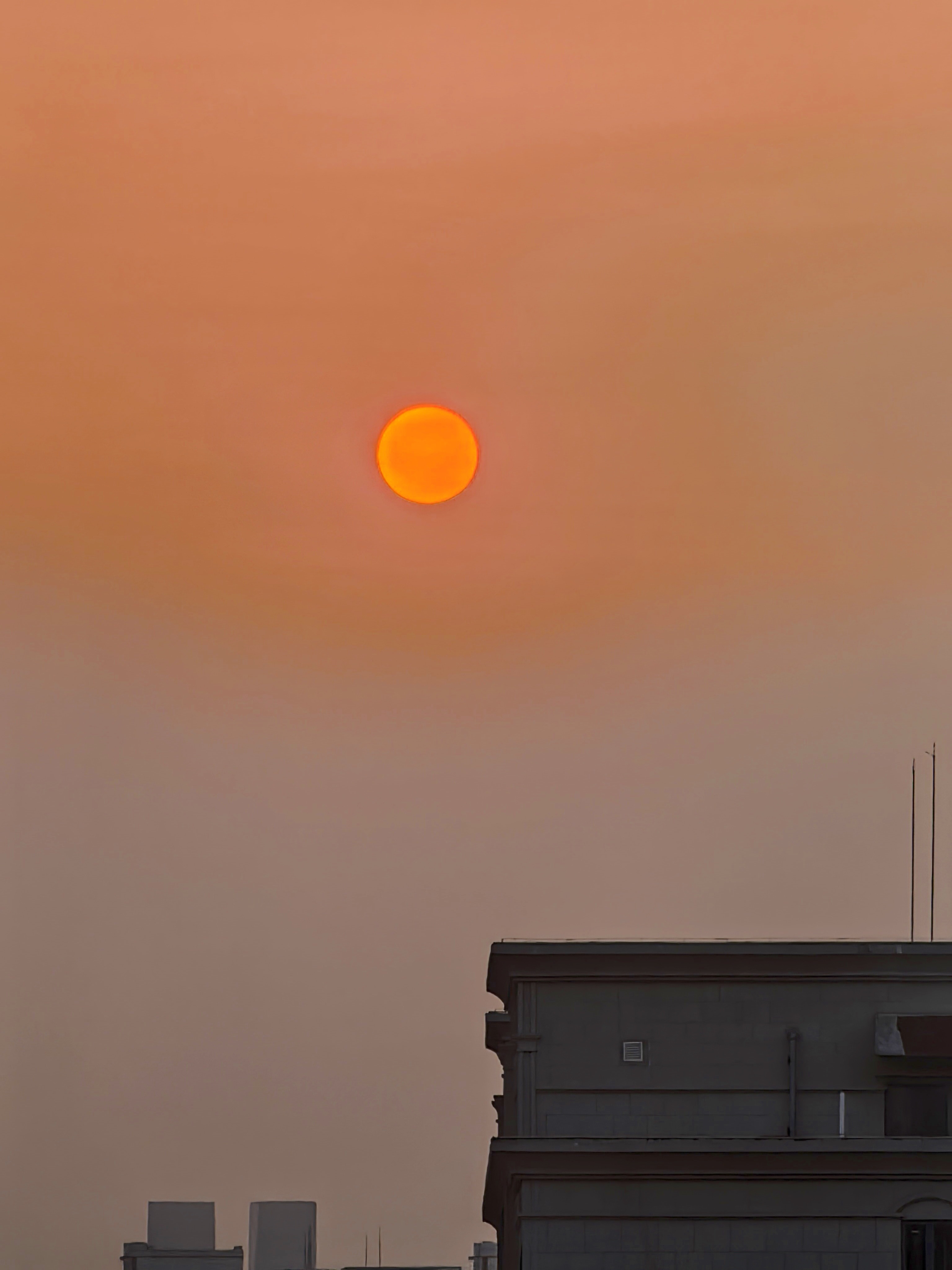 4月2日清晨,北京天空现金橘色朝霞,壮观美丽。