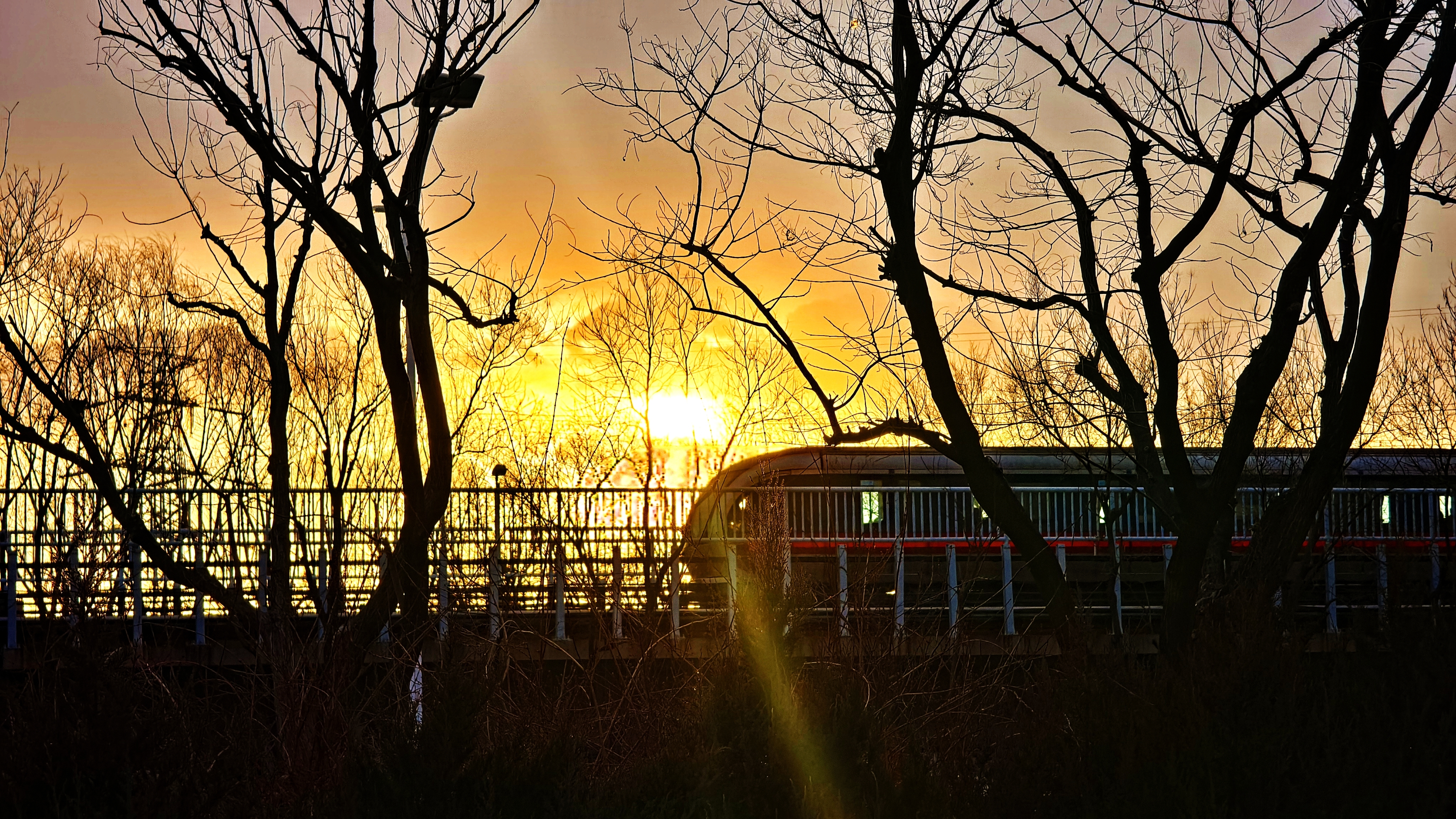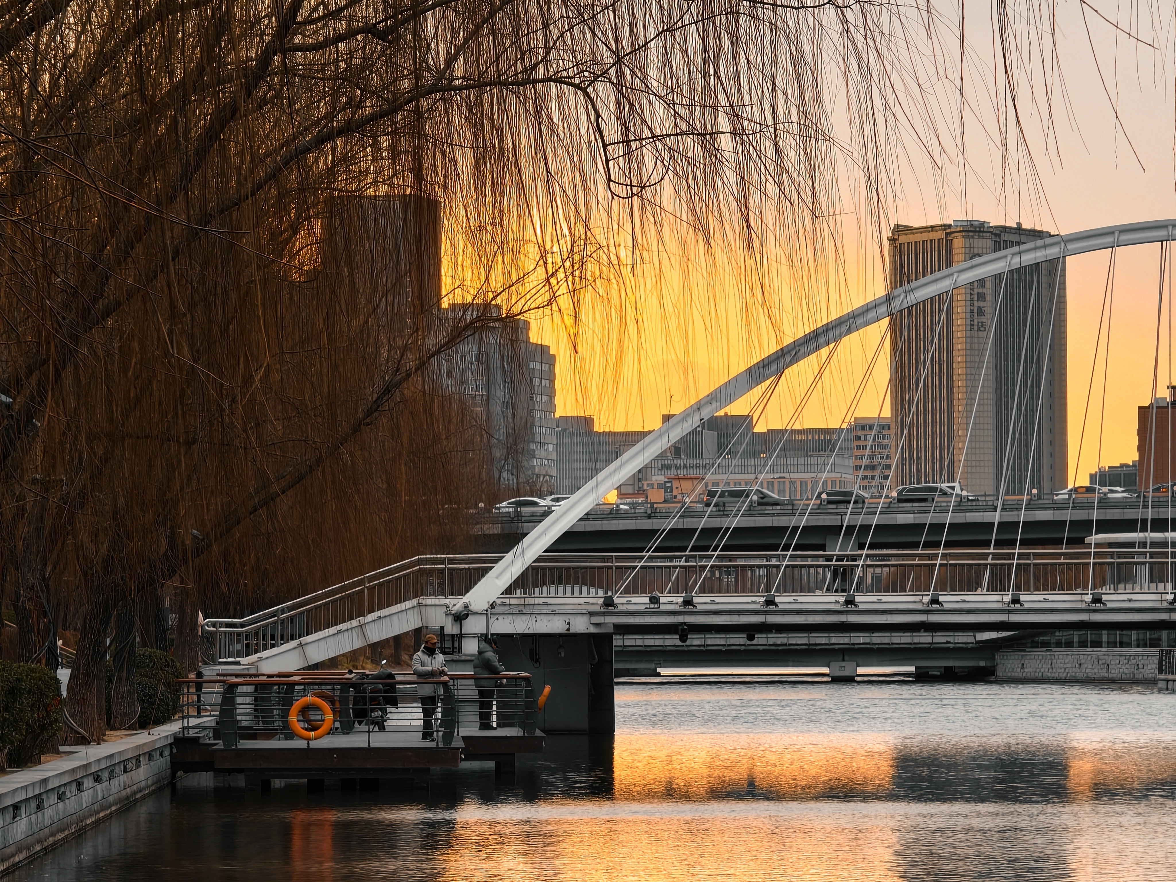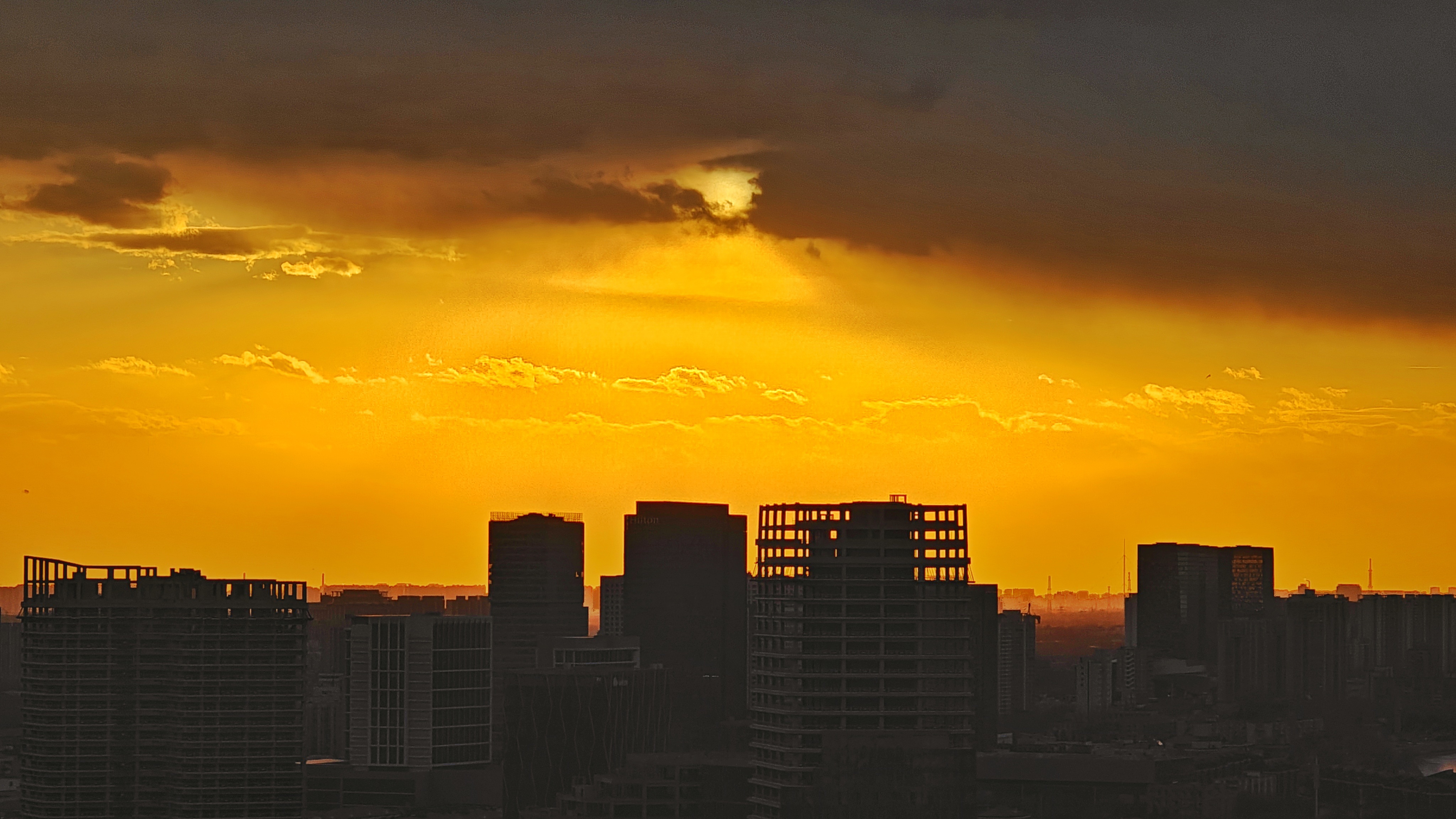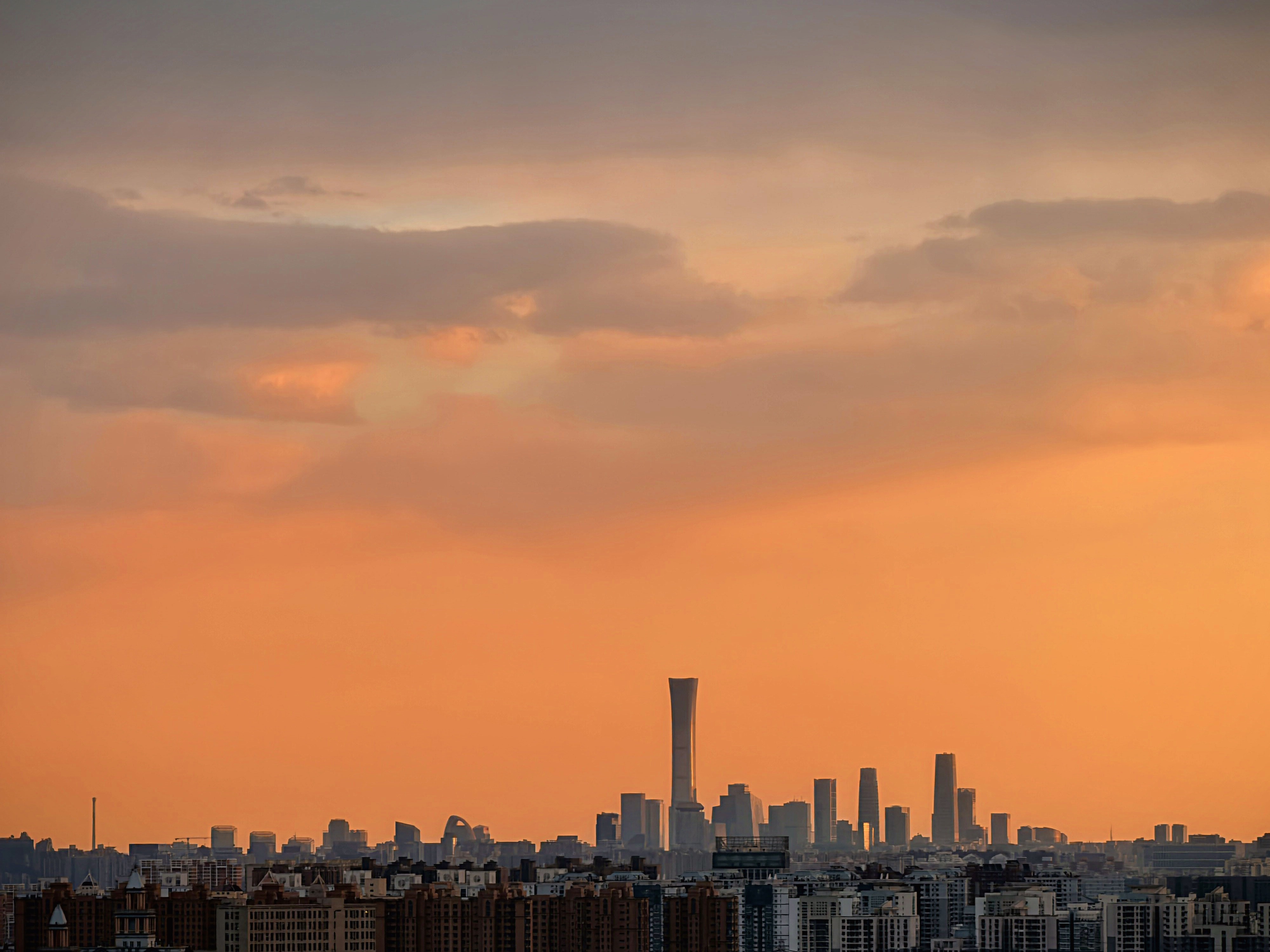 2月1日傍晚时分,北京天空出现金色晚霞。