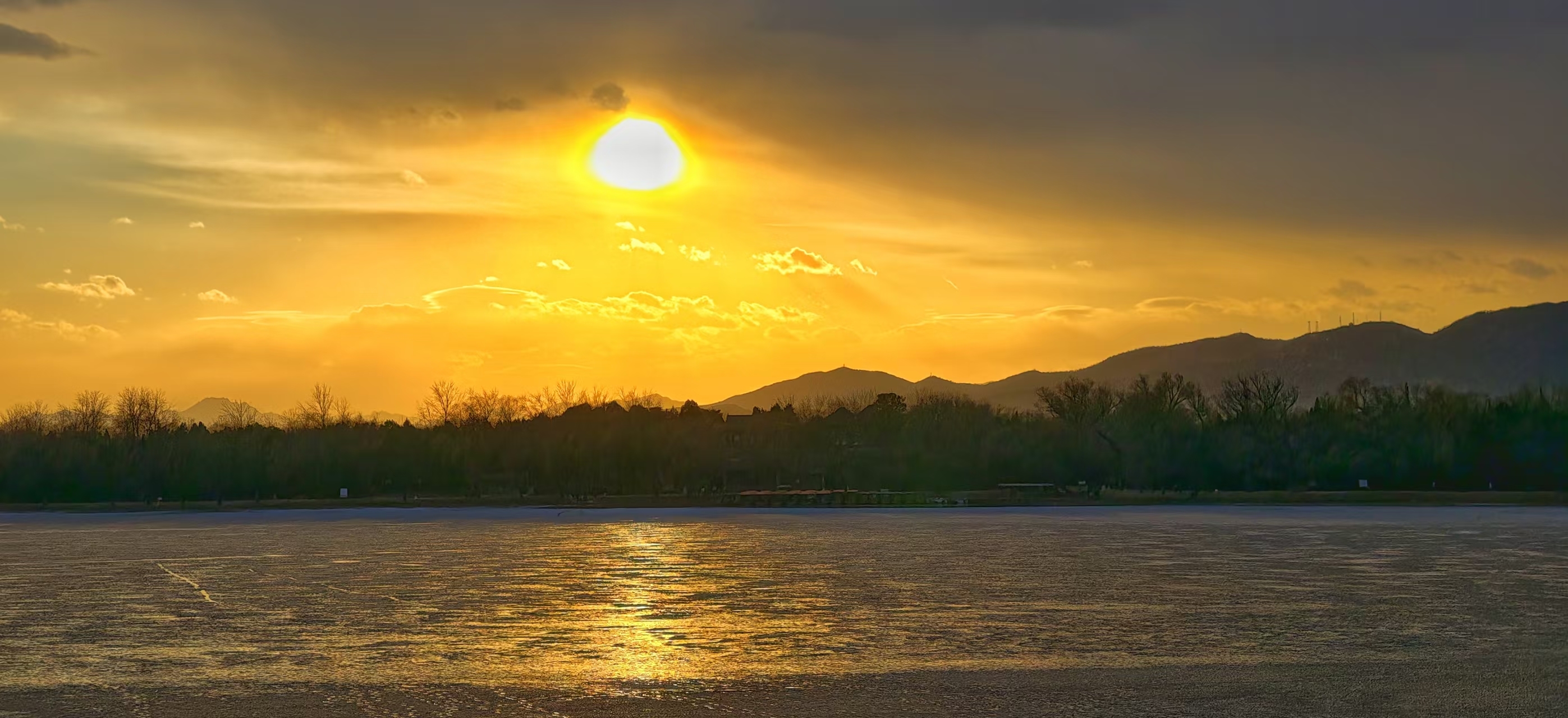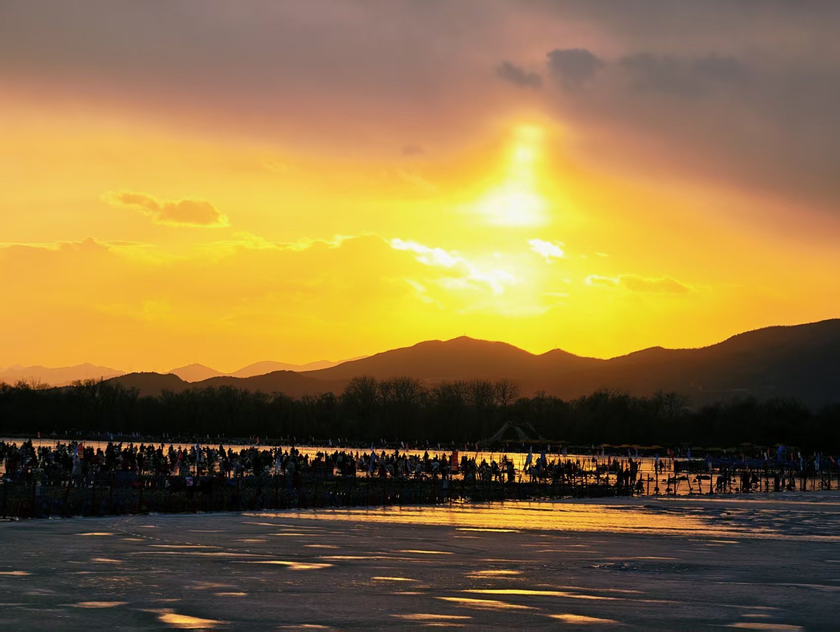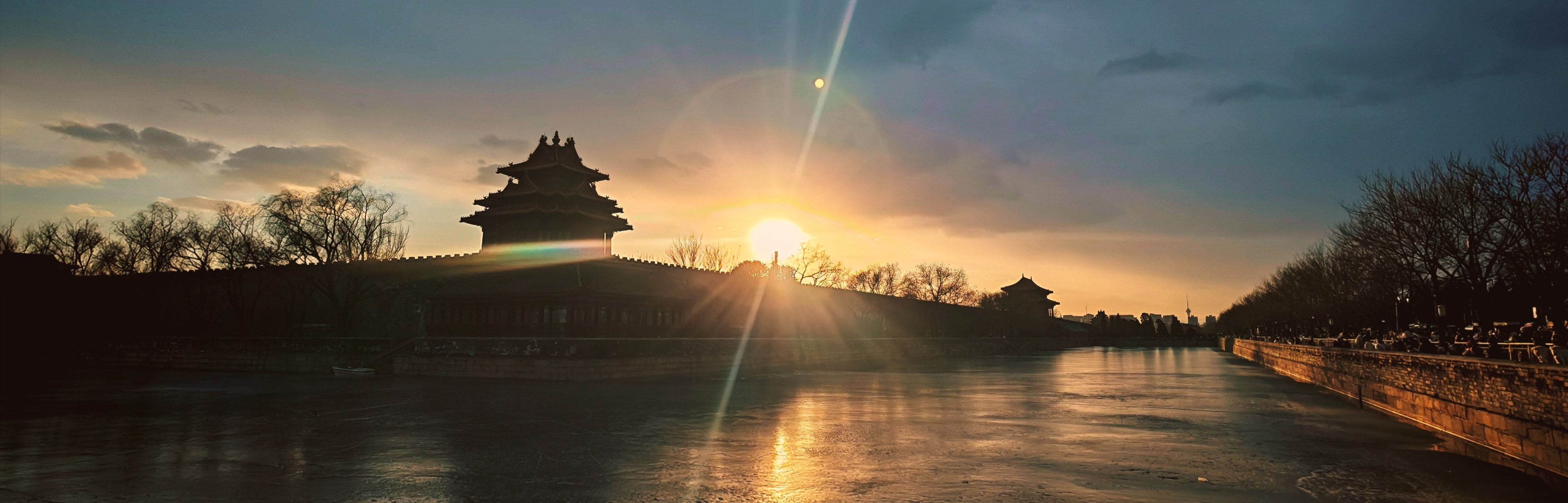 2月1日傍晚时分,北京天空出现金色晚霞。