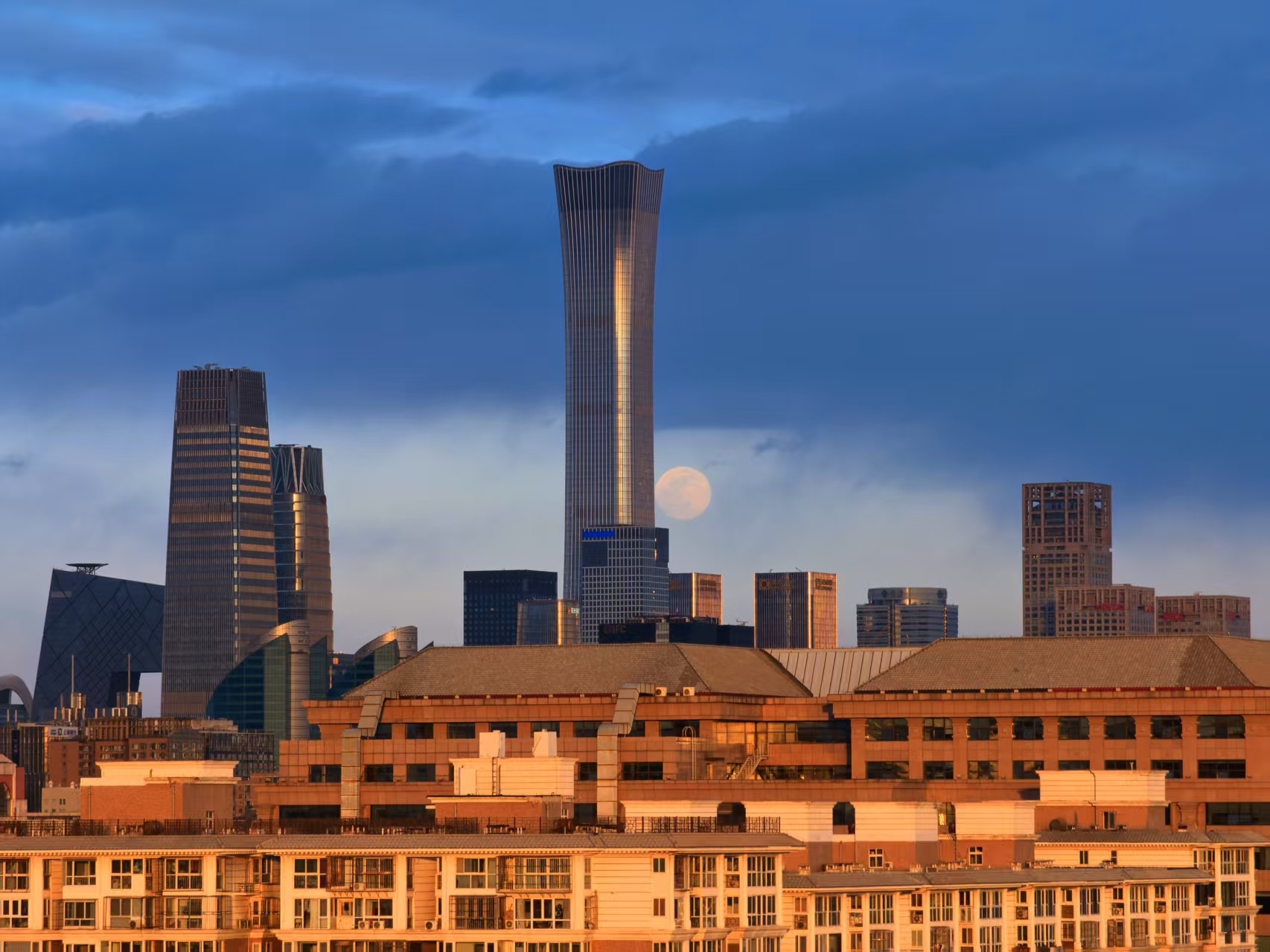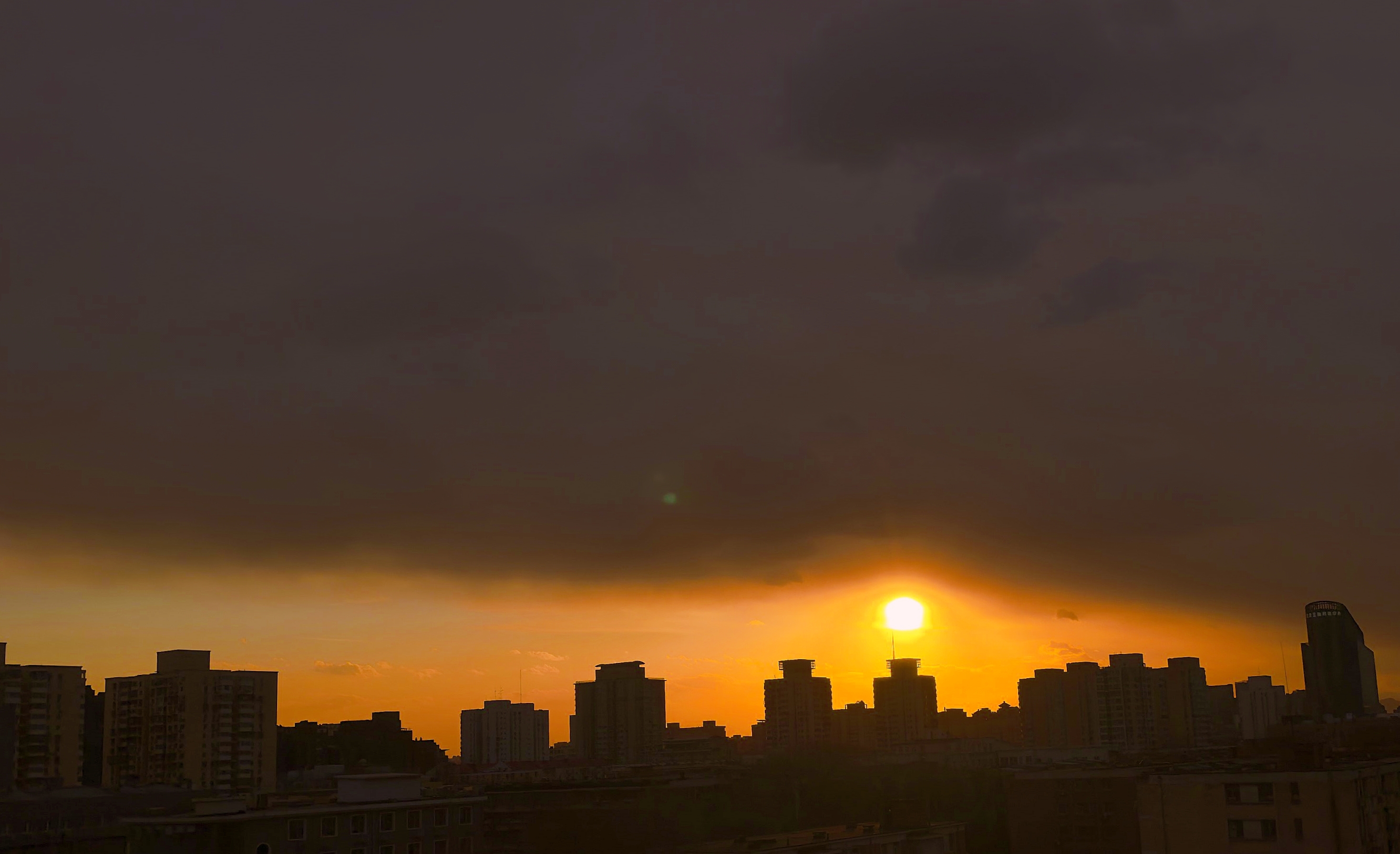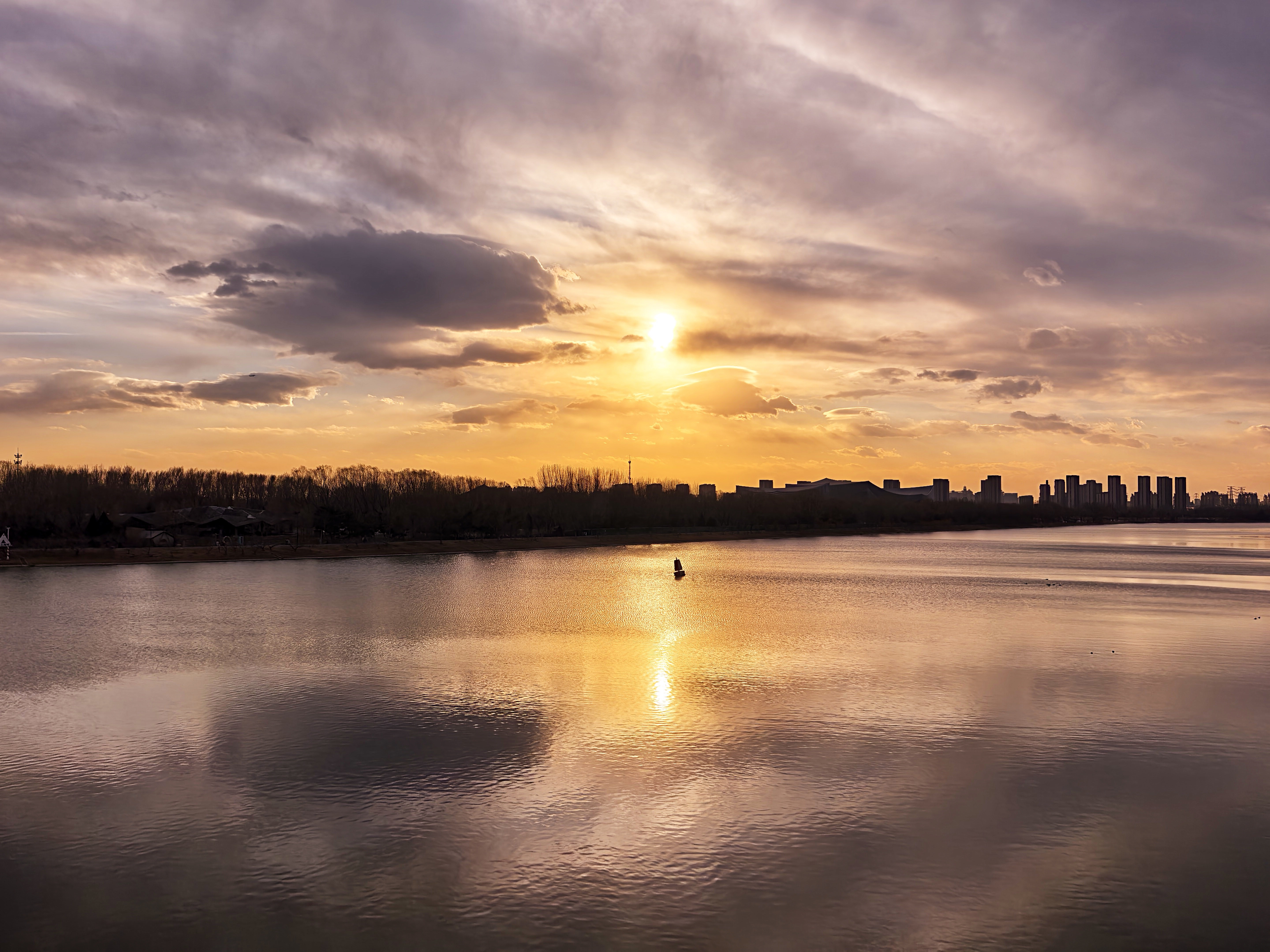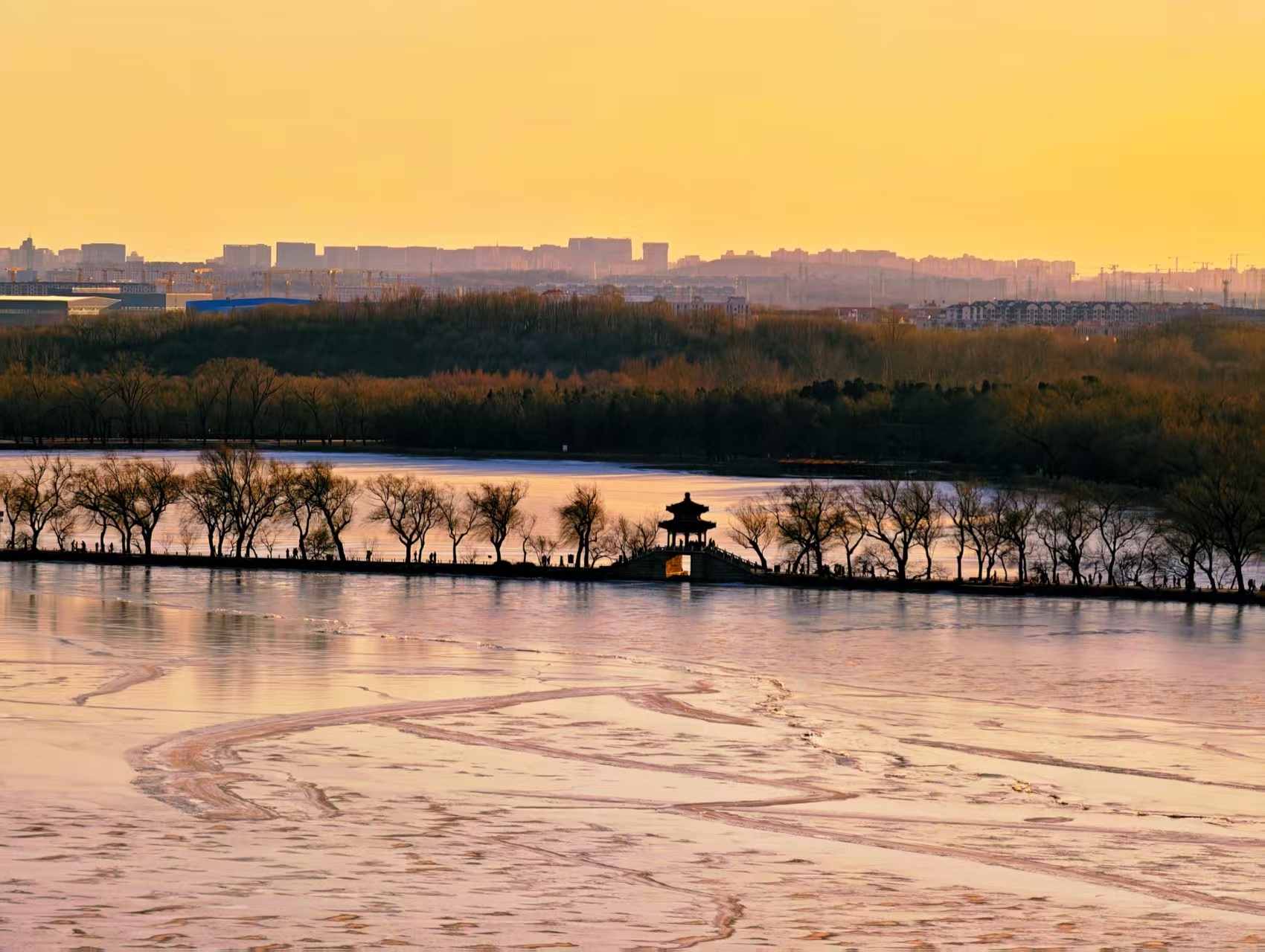 2月1日傍晚时分,北京天空出现金色晚霞。