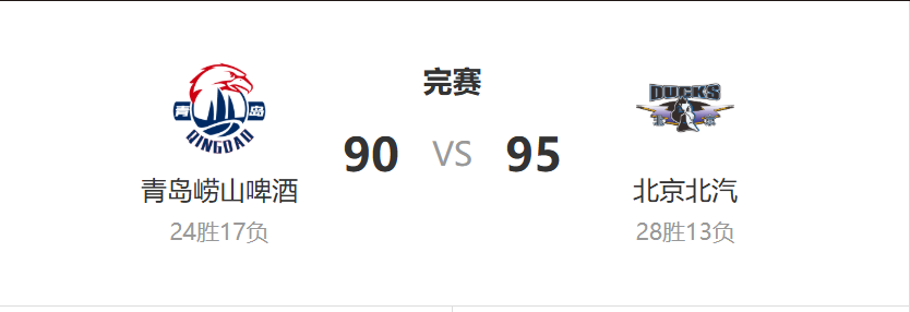 4月19日,在CBA常规赛第41轮比赛中,北京北汽队在客场以95比90战胜青岛队,目前以28胜13负的战绩处在联赛第四位。