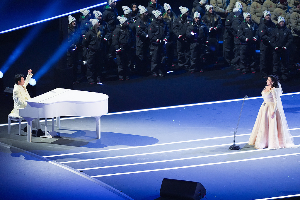 在升奥运五环旗环节,担任《奥林匹克颂》伴奏的是中国钢琴家郎朗。时隔18年,在2008年北京奥运会后,这是他第二次在奥运会开幕式上表演。他与意大利女中音歌唱家巴托利以及斯卡拉歌剧院儿童合唱团一起,进行了一场合作演出。
