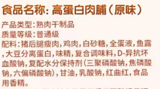 比如这是我昨天网购时刷到的一款猪肉脯,配料表里全是添加剂。