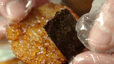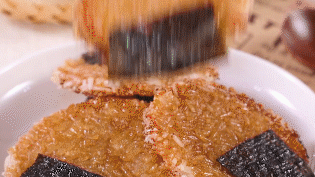 5分钟后取出烤盘,再次刷上酱汁用海苔包裹米饼表面,再次放入烤箱中烤20分钟即可。