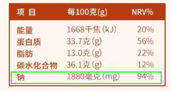 再一看钠含量更是爆炸,吃几片一天的盐摄入量就超标了。
