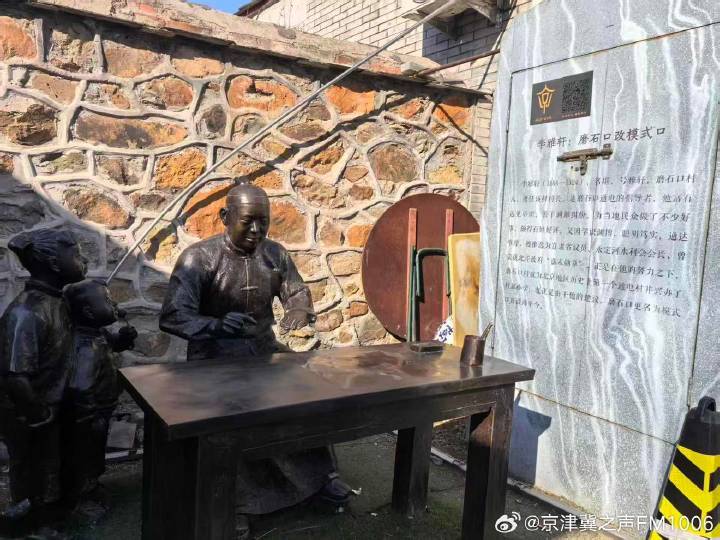 在街边的展板上,看到了李雅轩的介绍。他是磨石口村的村长,1923年,正是在他的建议下,“磨石口”更名为“模式口”。他还创办了村里第一所小学,深得百姓好评。