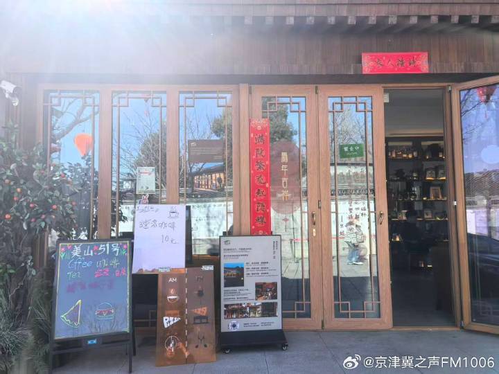 ? 美山51号,门口的牌子写着“满院茶花”,卖茶也卖咖啡。