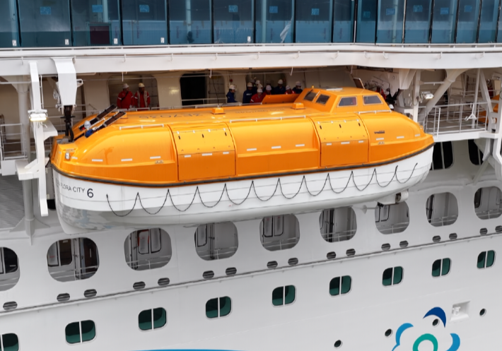 大型邮轮作为常年在海上行驶的船舶,完备的应急系统必不可少。通过救生艇脱钩、巡游等试验来确保出现紧急情况时船上人员可以安全撤离。