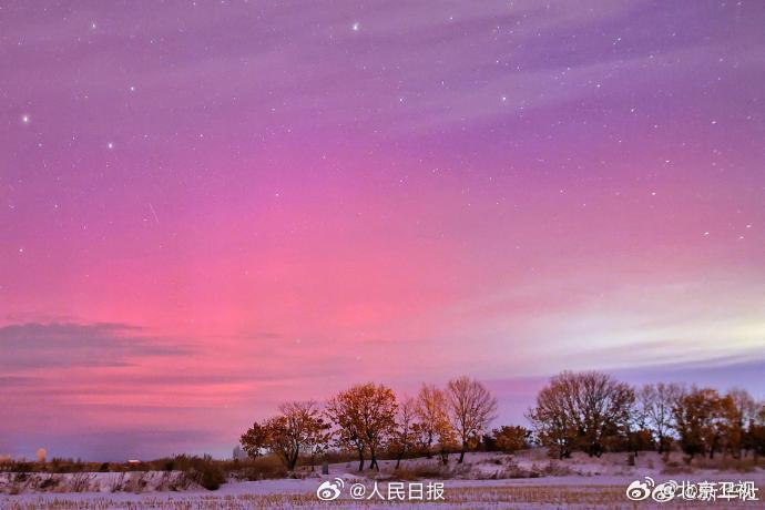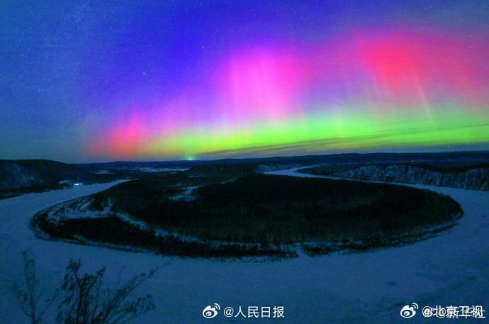 1月20日,黑龙江多地夜空绽放绚丽极光,流光溢彩的光影在天际舞动,勾勒出一场浪漫的冬日限定奇观。