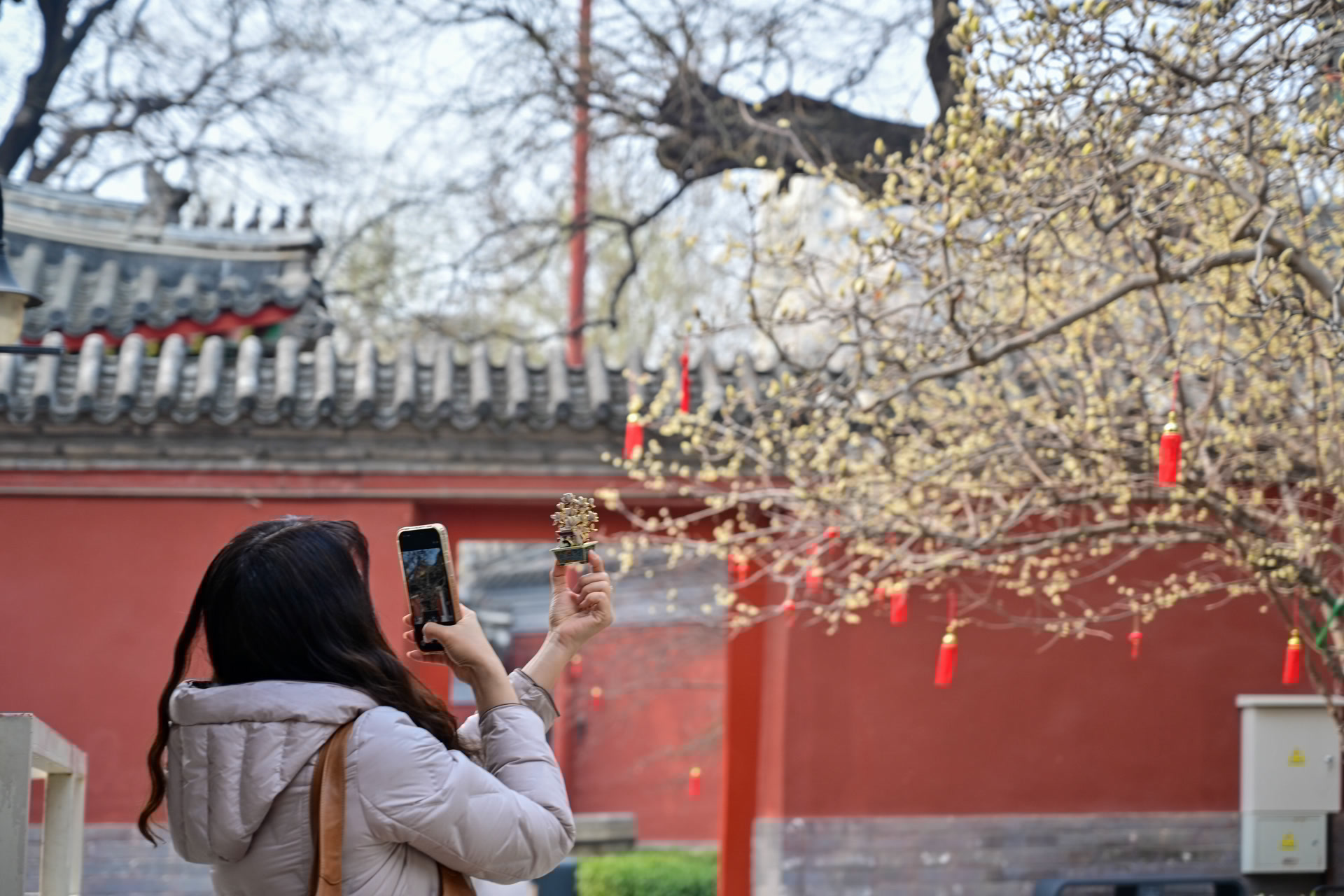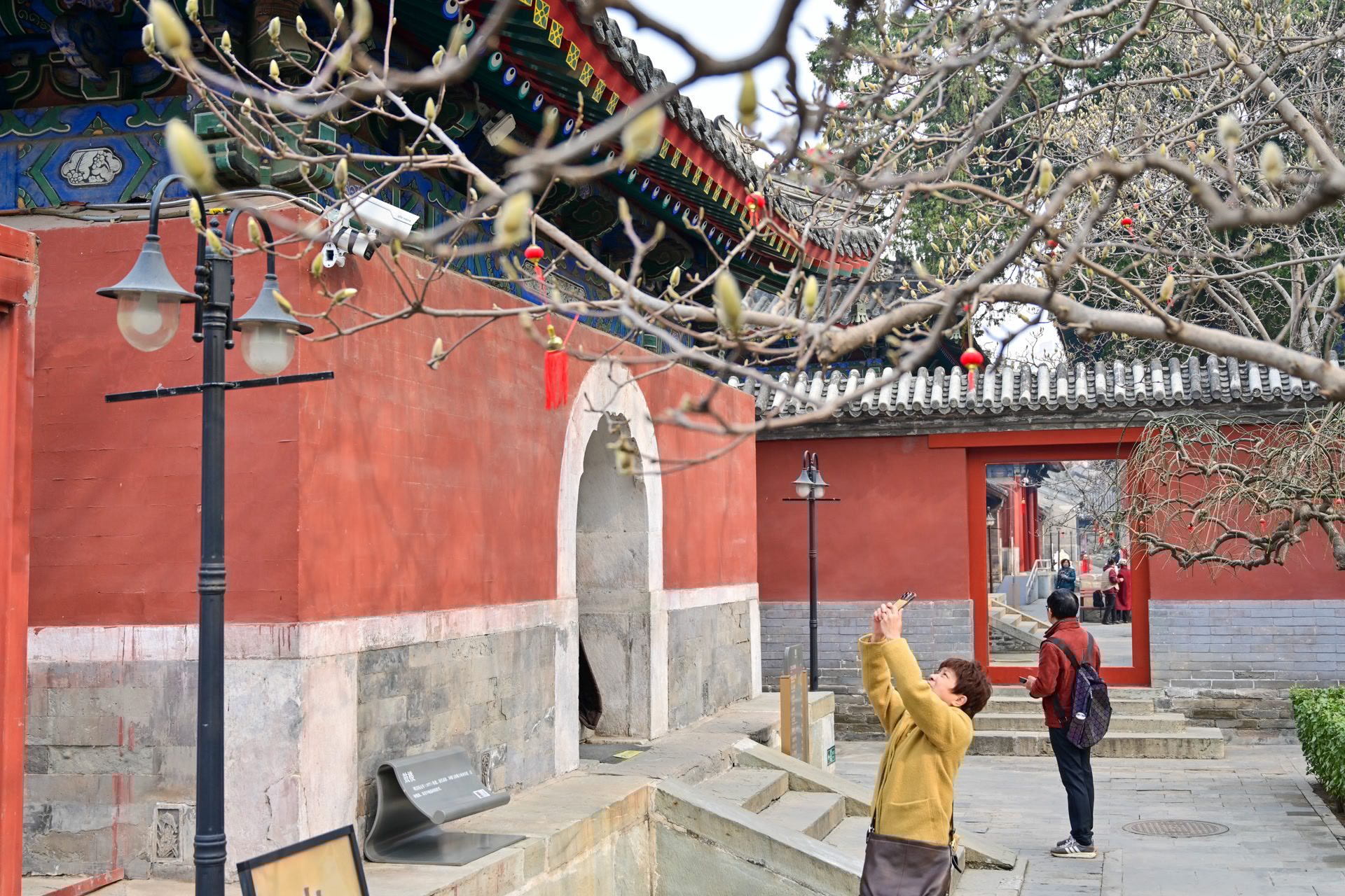 万寿寺中路院内,玉兰花苞爬上枝头,为古建筑增添了几分诗意与生机。9时许,观众三五成群进馆,大多直奔玉兰树下,举起手机、相机,寻找春光最佳拍摄角度。“经常刷到有人说这里是北京春天的‘顶流’打卡地,我特意约了朋友赶早来。”观众陈女士笑着说,“虽然还没到玉兰盛放的时候,但我和朋友也拍得很尽兴,花影与红墙格外搭配,我们打算过几天再来欣赏满院春色。”