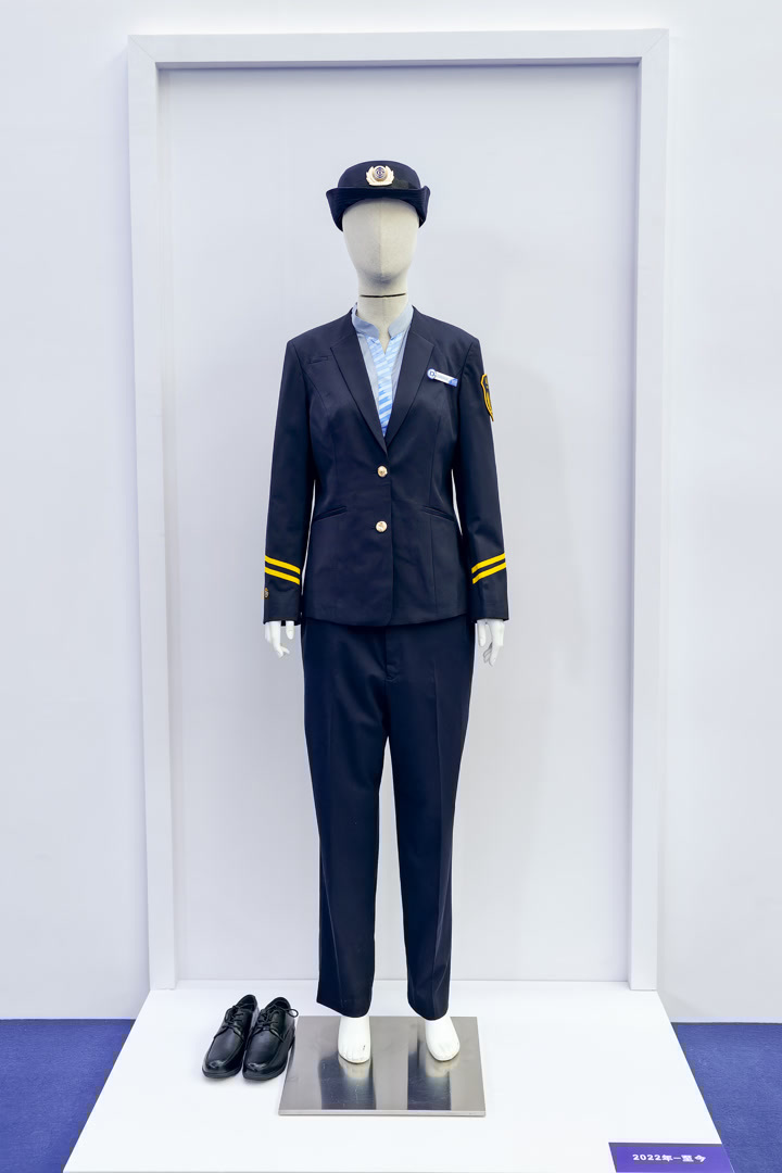 其中,管理人员和站务人员的西装依旧延续藏青色主色调,并优化了面料材质,穿着更加舒适。制服换代后,原本使用大头针固定的工牌,更改为魔术贴粘贴设计,固定更加牢固;袖标采用弧形设计,更加贴合胳臂,更显板正。新制服还增加了多功能挂袢,方便员工携带记录仪等日常工具。