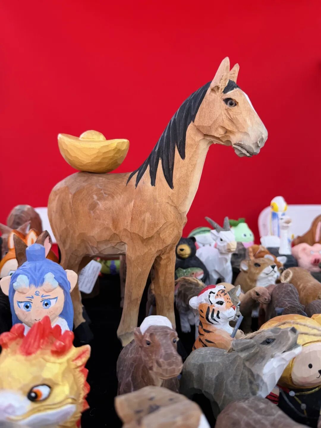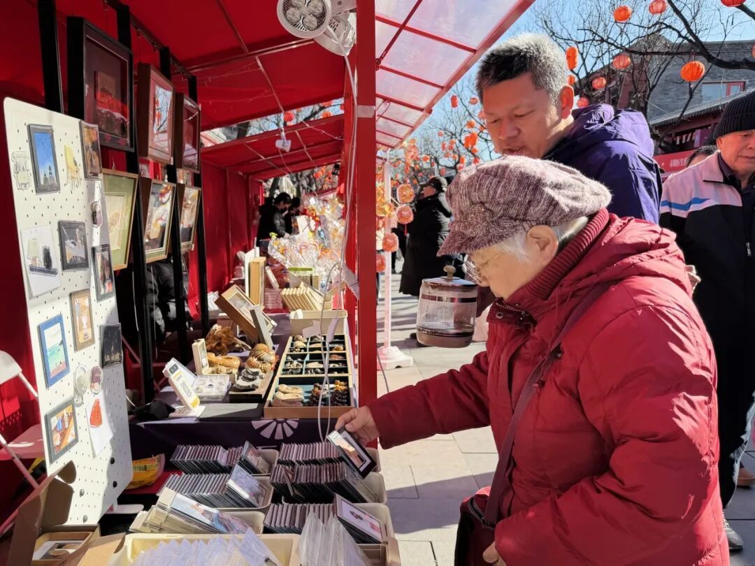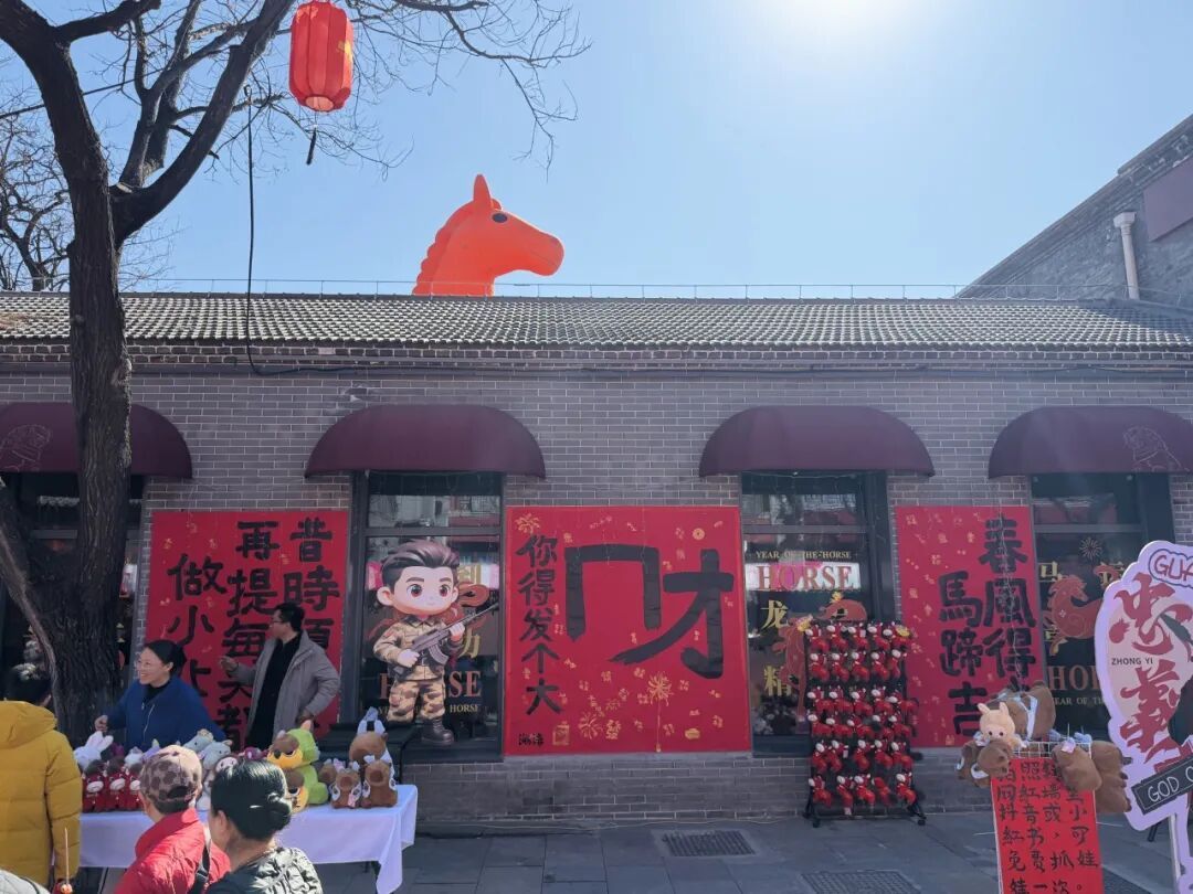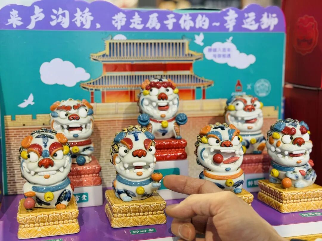 宛平城里最具特色的卢沟桥礼物店也专门为春节梨园庙会活动设计了特色文创。卢沟桥礼物店负责人张严柱介绍,针对这次春节做了几款产品,一个是平安小狮,现代的狮子;第二款是和景德镇瓷器进行合作,做了一款狮子盲盒,7款狮子,每一款都有它的寓意,例如柿子是“事事如意”,每个狮子都有在卢沟桥上的原型;第三款狮子,是亲民一点的价格,与马年相关做了三款狮子骑小马,“卢沟桥狮子就是灰色的,骑着不同颜色的马代表着不同的寓意。”