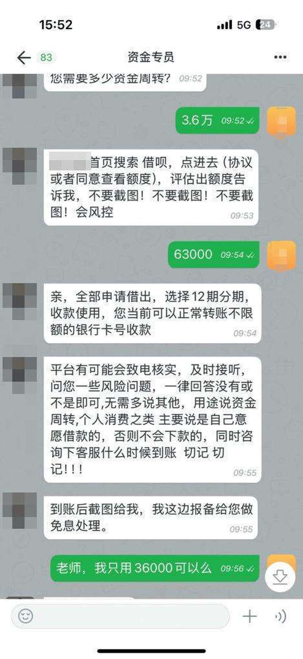 对方让时颖去进行信用贷款,并强调接到反诈中心电话“无需多说”。受访者供图