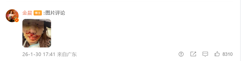 金晨发文道歉解释事故原因,并晒出受伤照片/来自网络