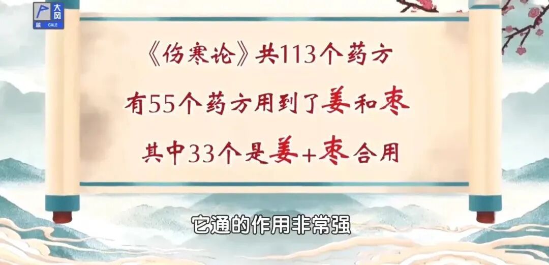 他介绍:生姜和枣可是《伤寒论》中的经典配伍,113个药方中有33个是姜与枣的合用。