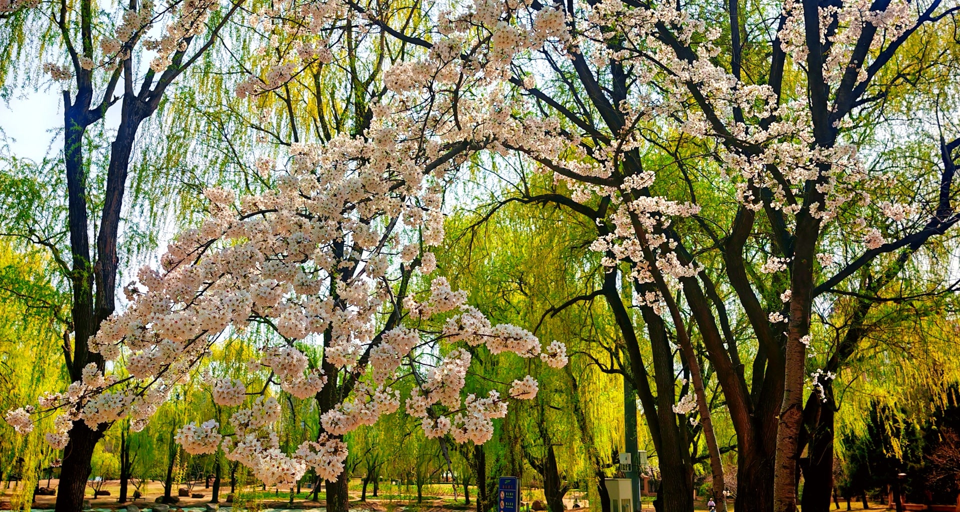 3月30日,朝阳区星河湾生态公园,明媚春光下,樱花缀满枝头,远看如云似雪,近观朵朵分明。