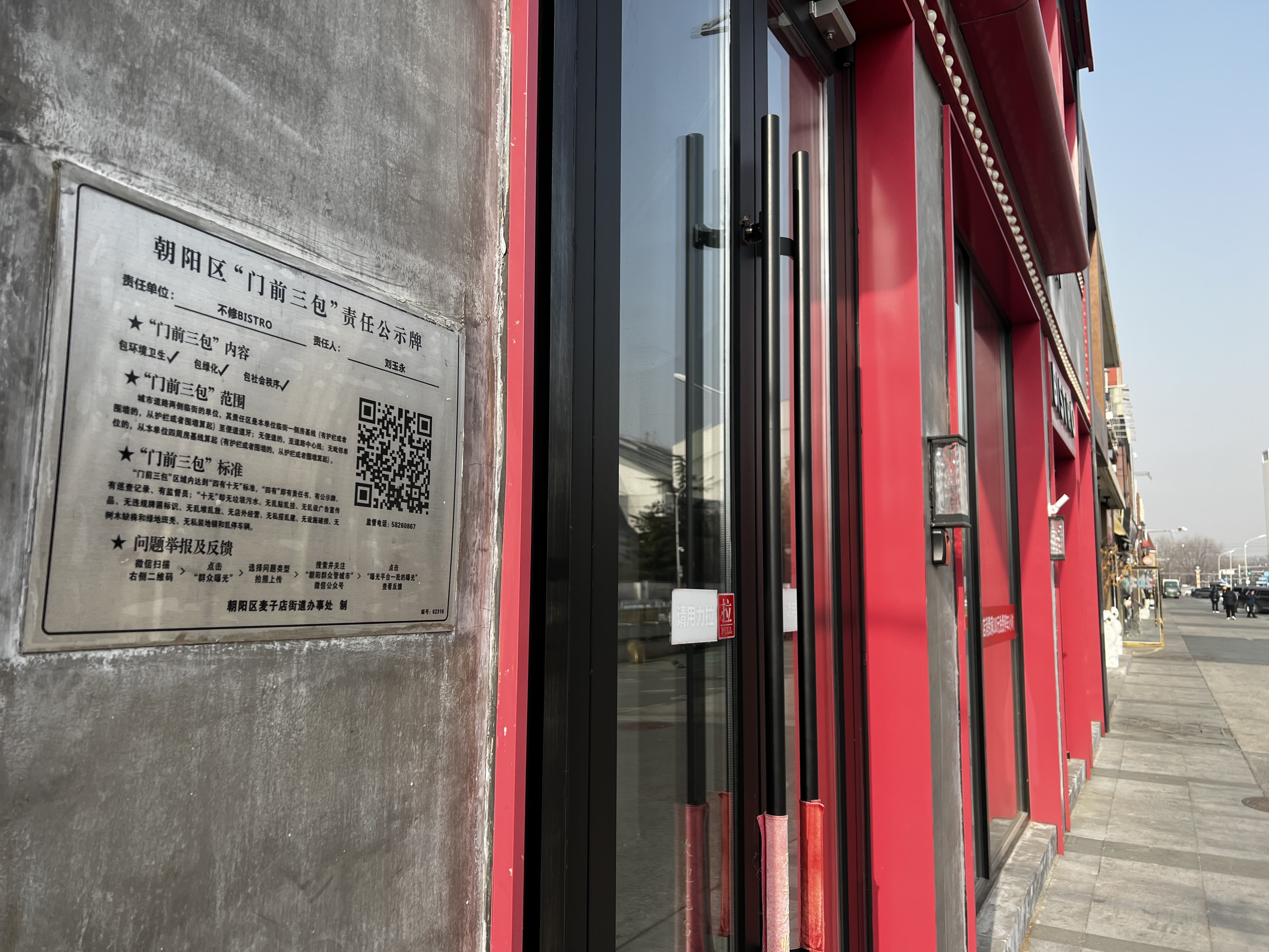 上午10点半,位于朝阳区好运街的部分商户已敞开店门,准备迎接顾客。记者注意到,好运街的每家商铺门口,都贴有金属材质的“门前三包”责任公示牌。牌上除了公示有这家店铺的“门前三包”范围、责任人以及监督电话外,还额外标有醒目的二维码。