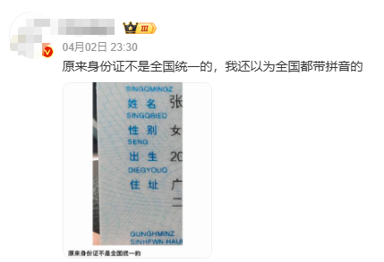 话题“原来身份证不是全国统一的”