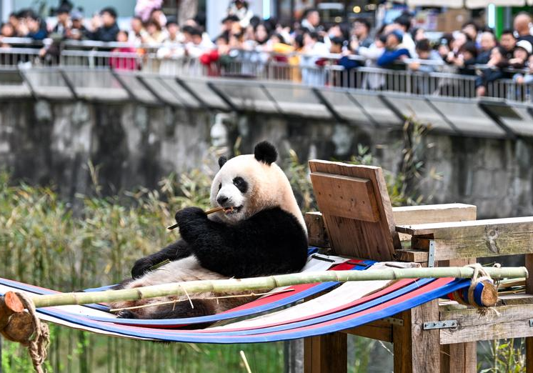 ▲2月24日,人们在观看大熊猫。新华社记者 唐奕 摄
