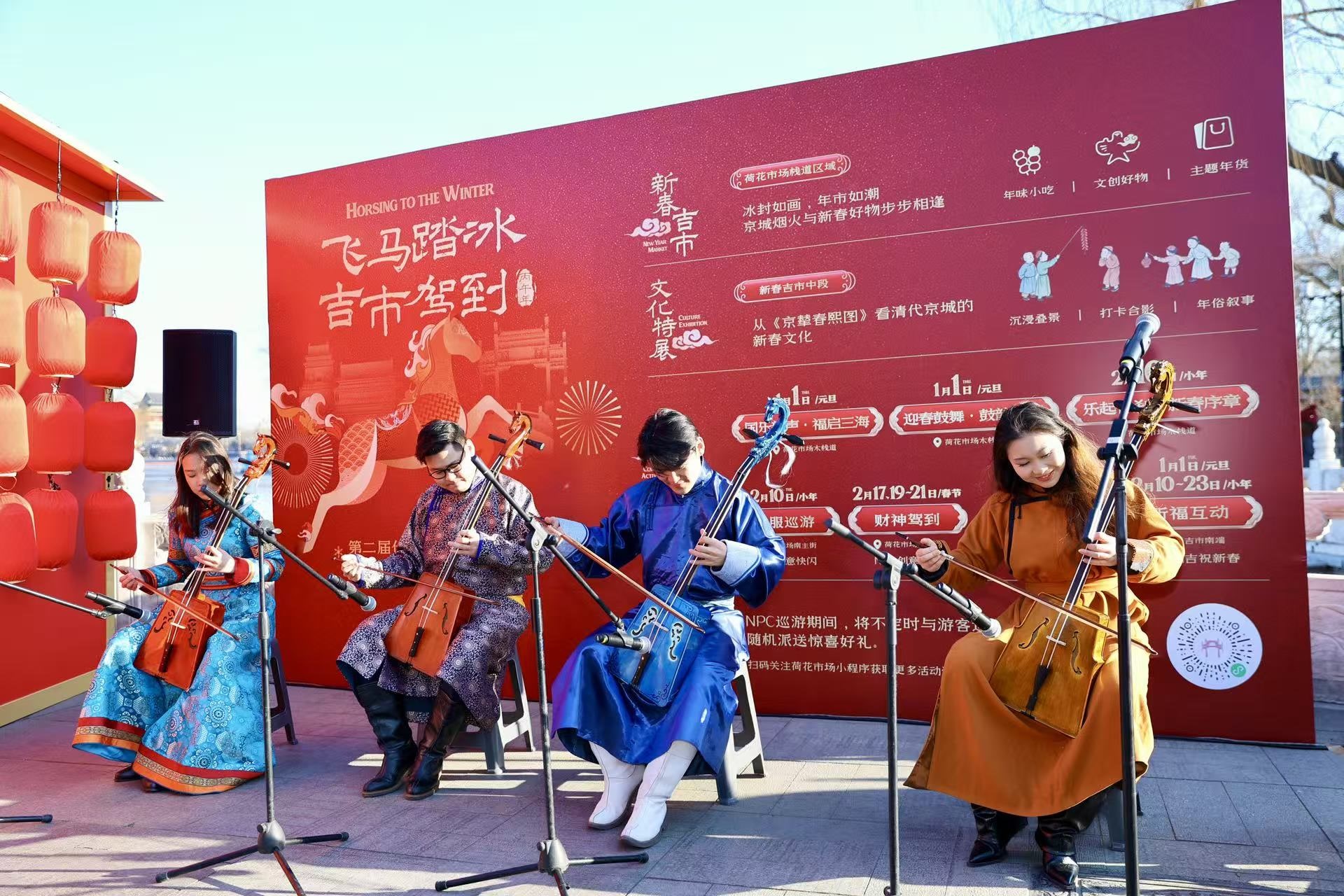 一湖冰面连通中轴文化,一条街巷汇聚节日烟火,2026年元旦,第二届什刹海冰雪嘉年华暨新春荷花吉市在什刹海景区荷花市场拉开帷幕。