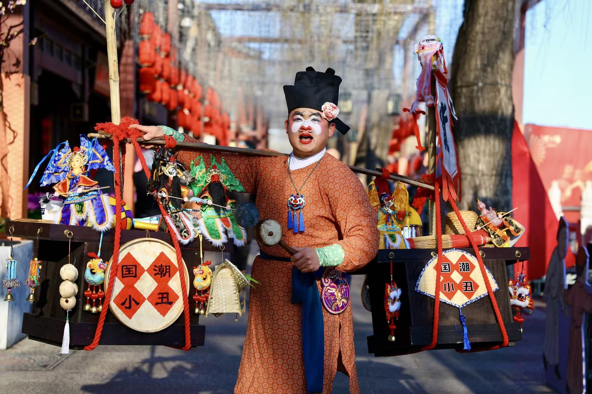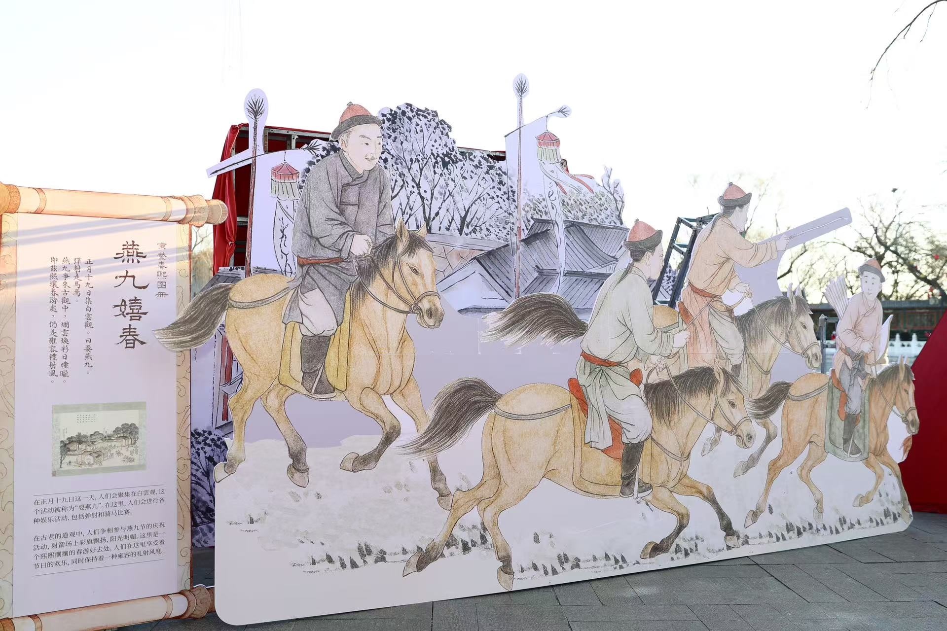 除了热闹的市集,文化展览为嘉年华增色不少。此次新春文化特展借鉴清代画家黄钺的《京辇春熙图》,通过立体叠景、镂空雕刻等形式,将古画中“春幡剪彩”“货郎春市”“燕九嬉春”等京城年俗场景转化为可步入的沉浸式体验。