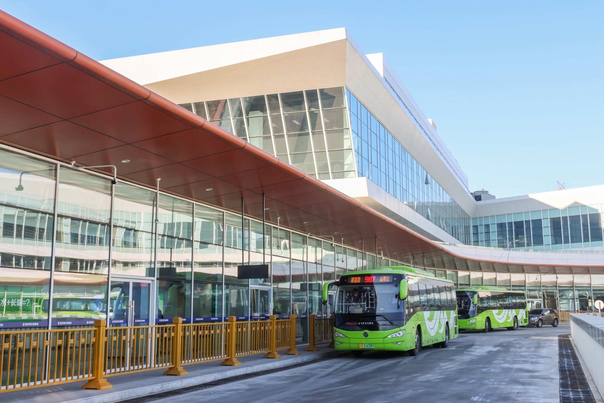 从望京西站E口出站,便来到了当天同步开通的望京西交通枢纽地下层。枢纽装修采用黑白配色,简约时尚又大气。记者注意到,枢纽公交站台共分为两层,乘客搭乘扶梯上一层楼,可以到达夹层,换乘866、571路公交和快速直达专线197路;再上一层即可到达地面层,可换乘907、987、851、854路公交。这两层站台与外界设置了玻璃墙隔离,乘客可以在温暖的室内等候公交。望京西交通枢纽,乘客可以搭乘公交前往密云、怀柔等地。