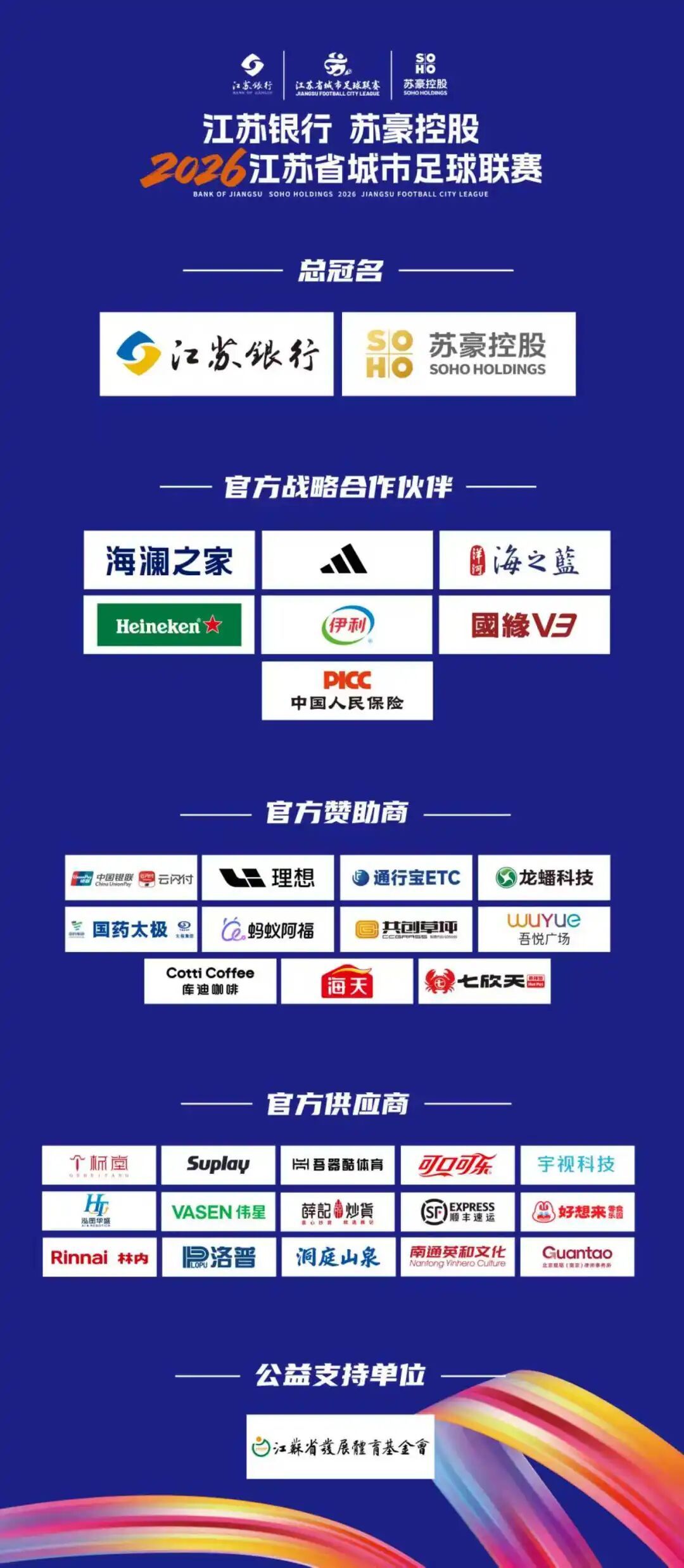 江苏银行 苏豪控股2026江苏省城市足球联赛即将火热开赛,十三城已蓄势待发!每一枚队徽都承载着一座城市的人文底蕴——从六朝古都的金陵雅韵,到江南水乡的温婉灵动;从太湖之滨的渔帆点点,到黄海之畔的澎湃激情……