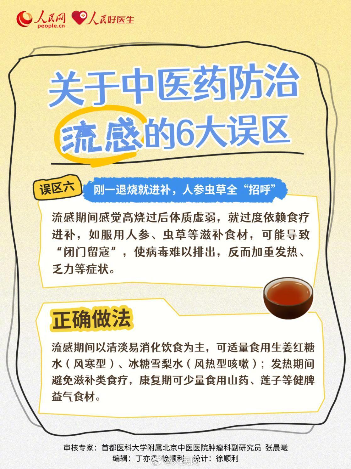 高烧后不要过度进补。预防方是万能药,人人都能吃?症状一好转就停药?刚一退烧就进补?大众在使用中医药防治流感时,常因认知偏差走入误区,不仅无法有效地预防流感,甚至延误治疗,损害健康。这些误区,你中了几个?