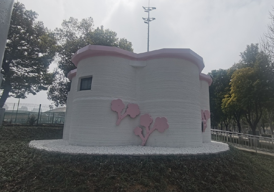 安信环保公司负责人陈凯介绍,该公司把建筑垃圾处理后产生的再生料,以30%-40%的比例融入3D打印建筑材料中,实现了建筑垃圾的循环利用,也让这座建筑成为赛事现场的“绿色示范”。建筑设计上,融合樱花形态的柔美与3D打印的精准高效,实现了自然环保与智能建造的完美融合。