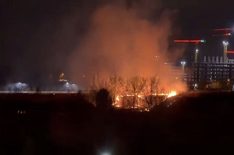4月5日20时左右,北京市大兴区瀛海镇兴亦路南一处空地起火,北京新闻广播记者发现后第一时间报火警,目前消防救援力量已到现场,云梯车已就位,消防队员迅速开始灭火作业。