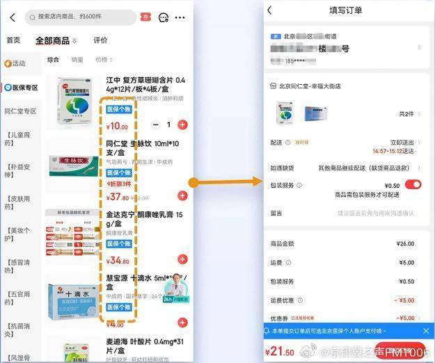 3月2日,北京市医保局介绍,北京医保参保人可在京东、美团两家购药平台,使用医保个人账户在900余家医保定点零售药店线上购买非处方药品。