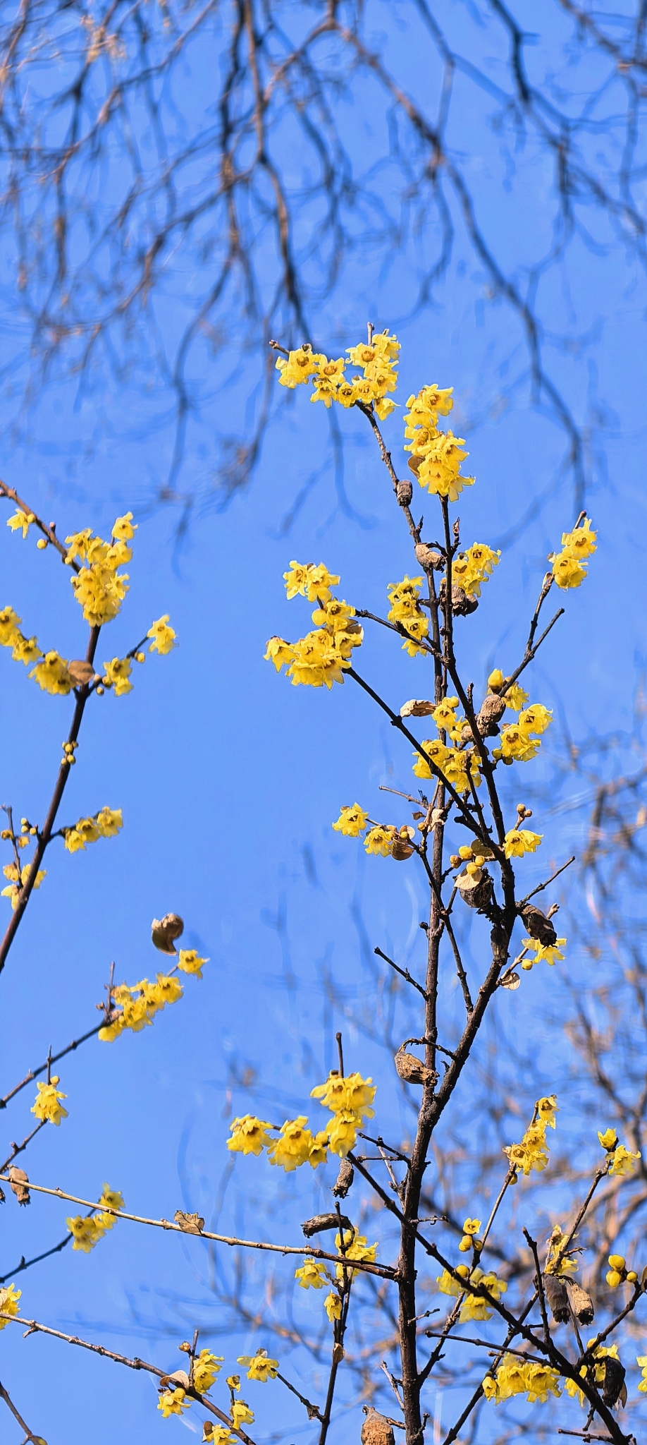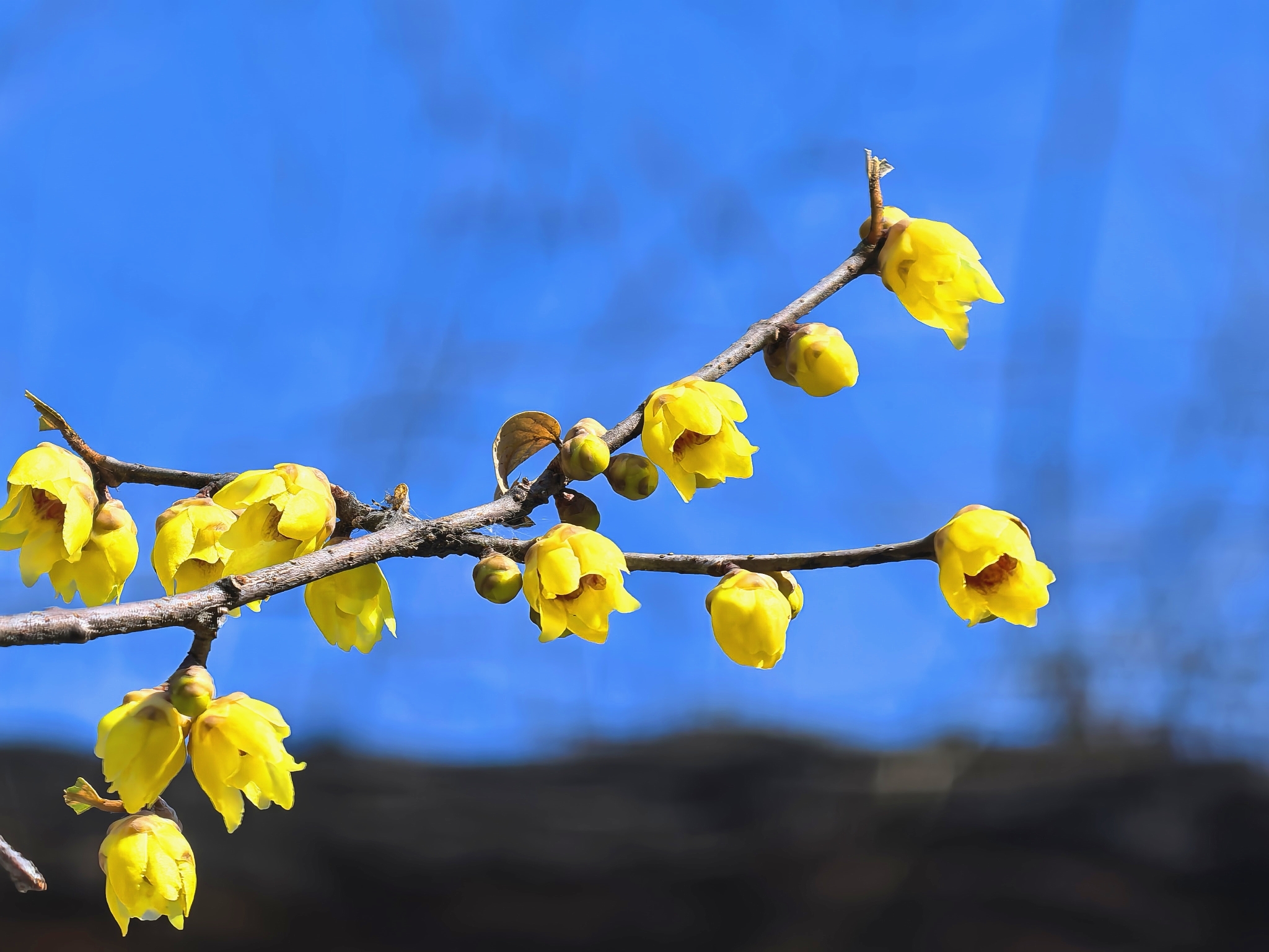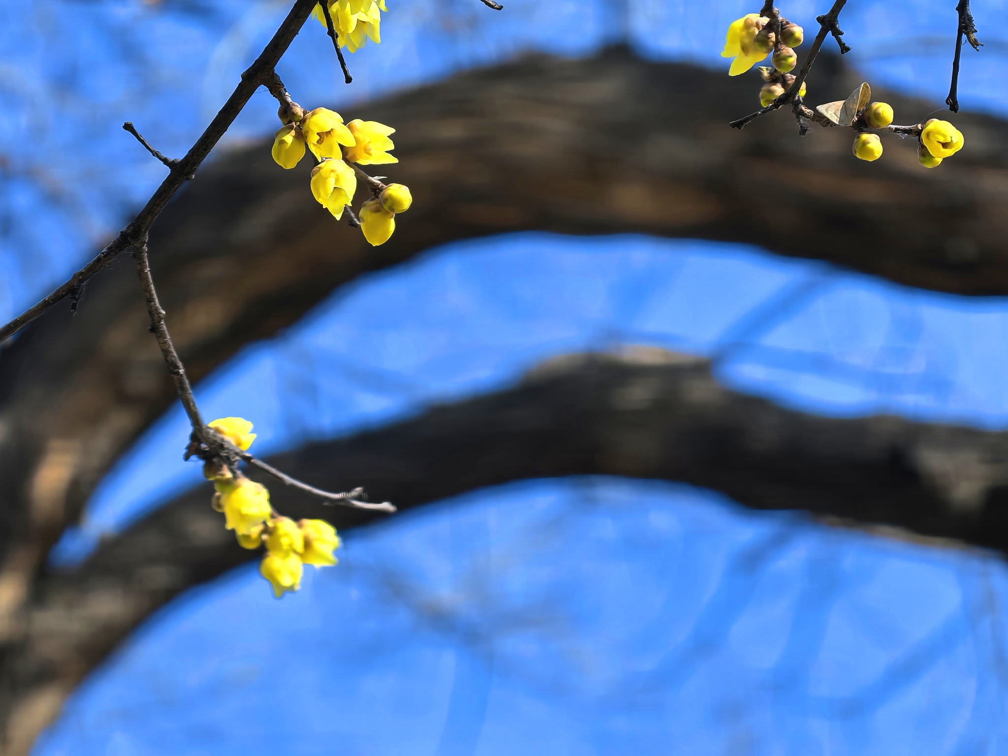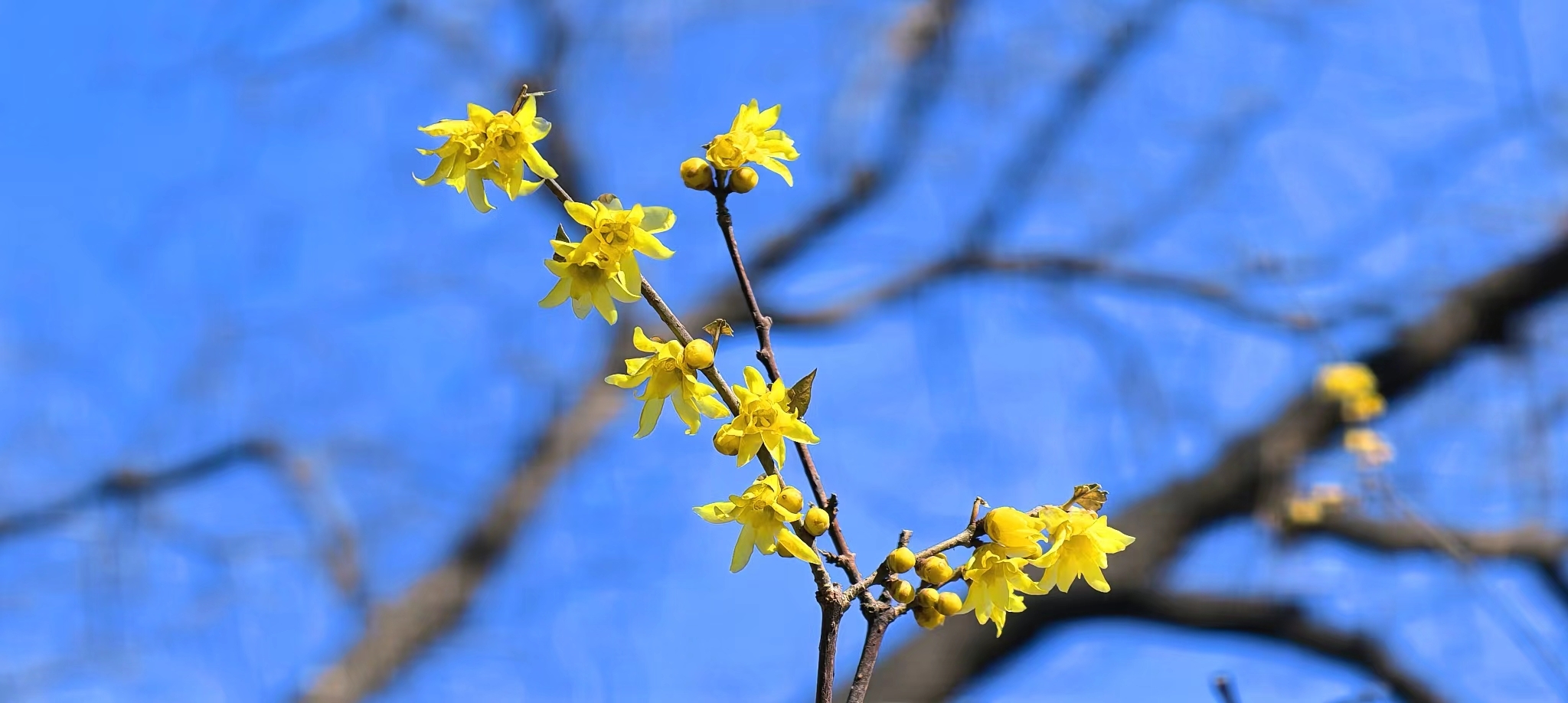 春光明媚,东城区前门东大街北京首都宾馆南墙外,一朵朵蜡梅挂满枝头,有的花蕾初绽,有的含苞待放,金黄色的花朵在阳光下美不胜收。