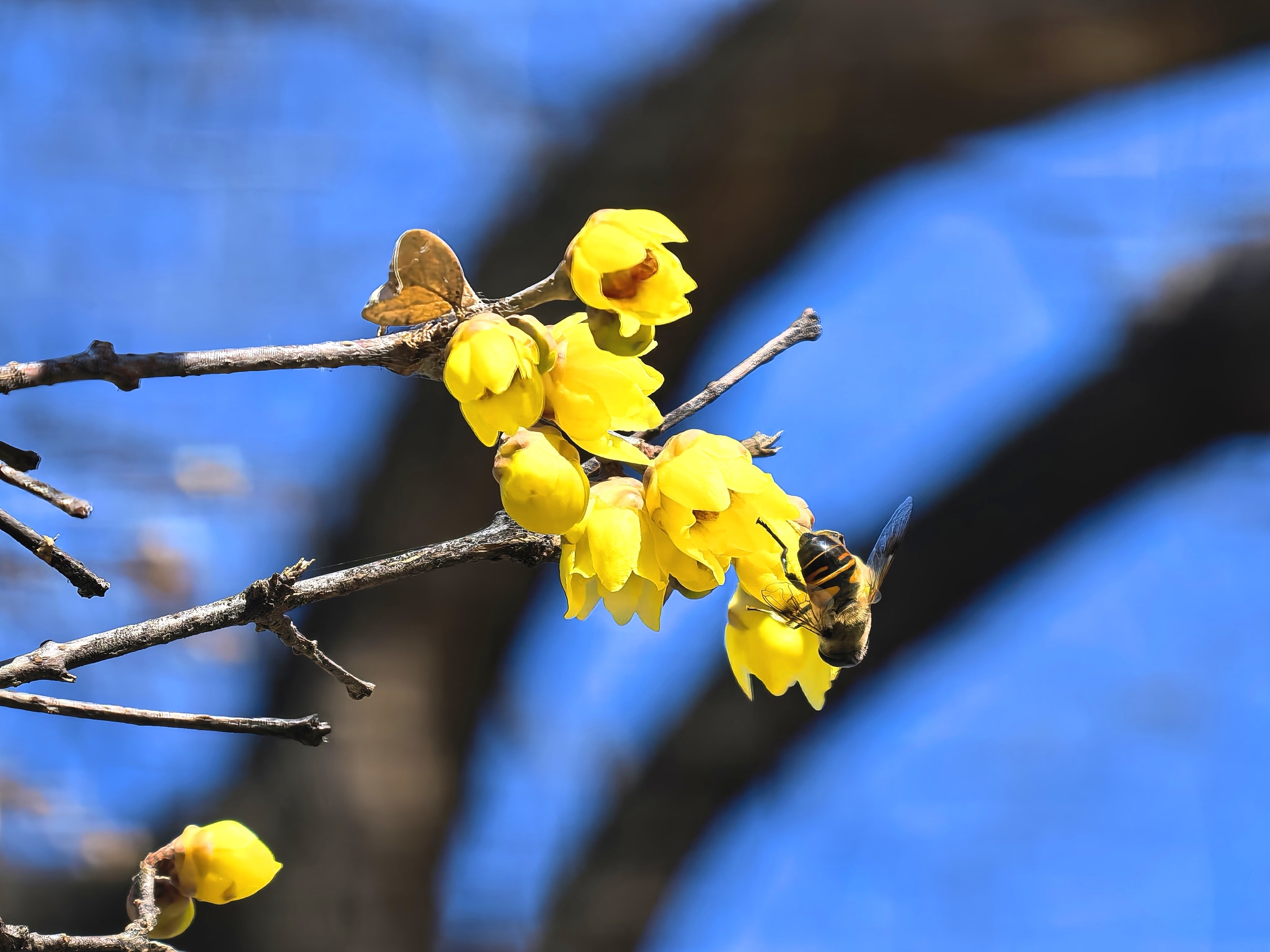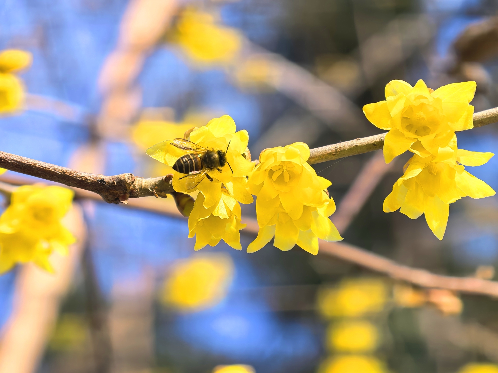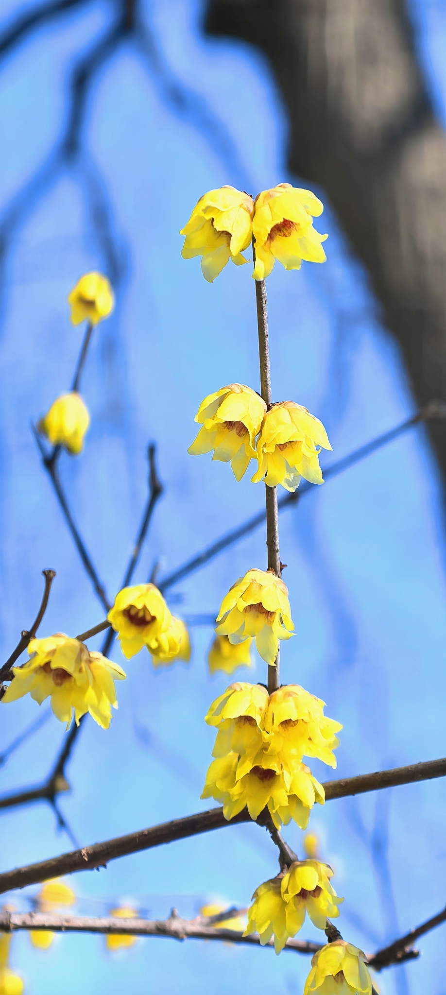 春光明媚,东城区前门东大街北京首都宾馆南墙外,一朵朵蜡梅挂满枝头,有的花蕾初绽,有的含苞待放,金黄色的花朵在阳光下美不胜收。